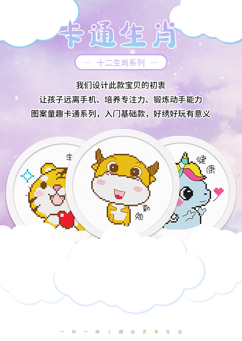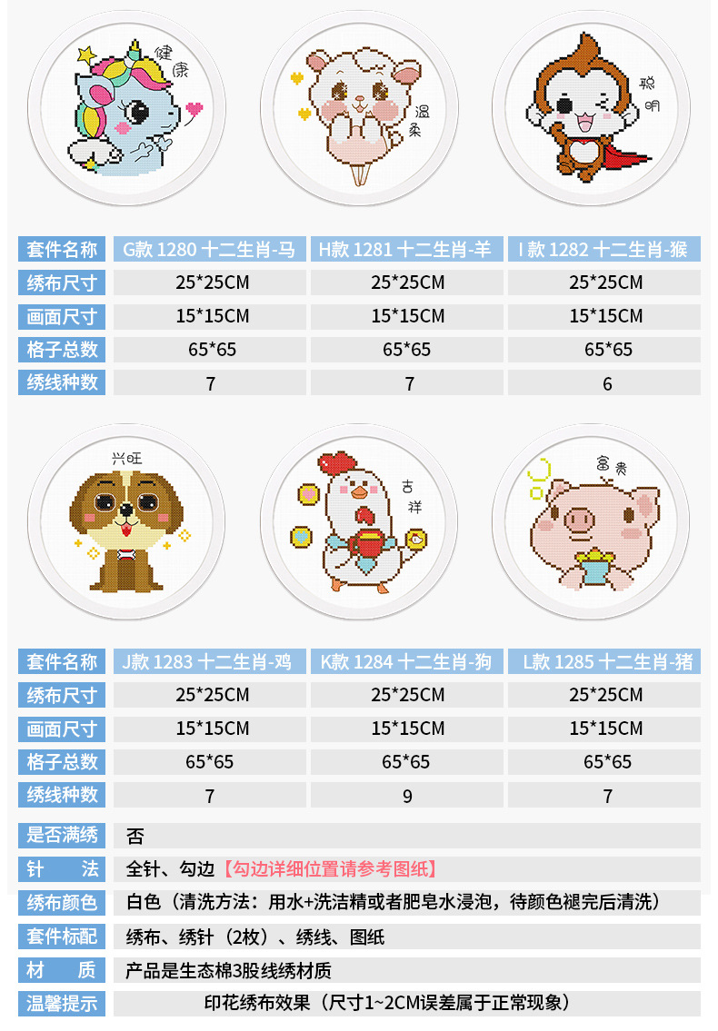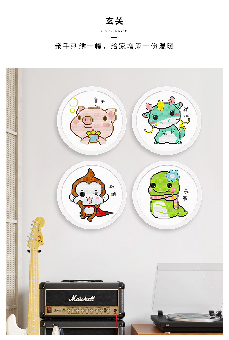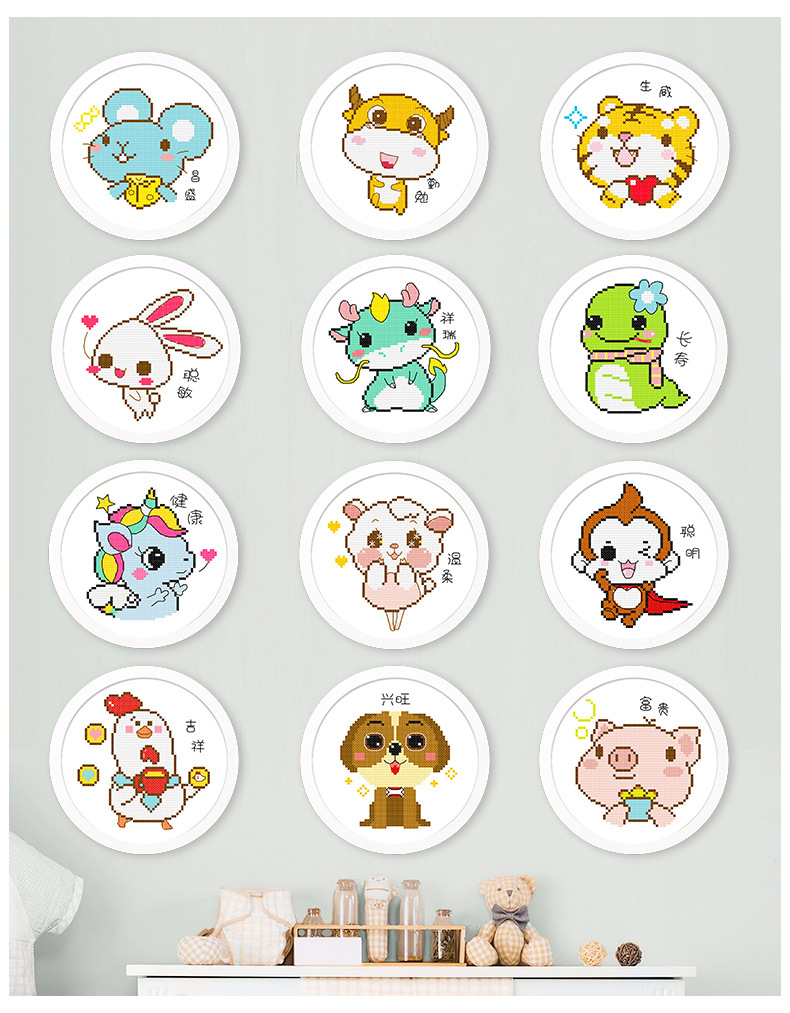 初学者十字绣十二生肖学生手工小件儿童卧室新手简单卡通款自己绣