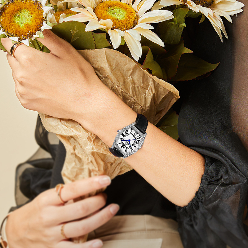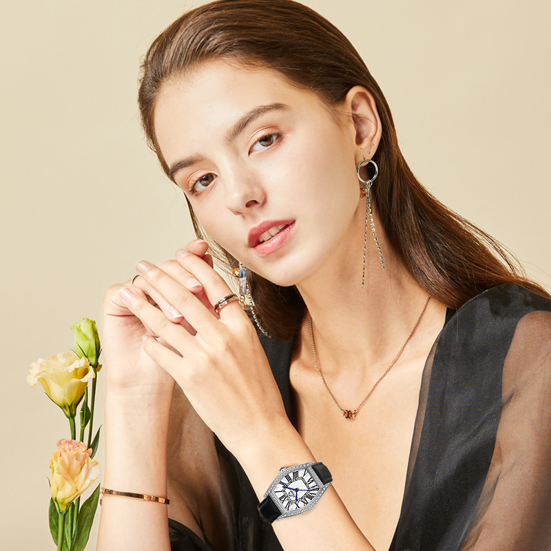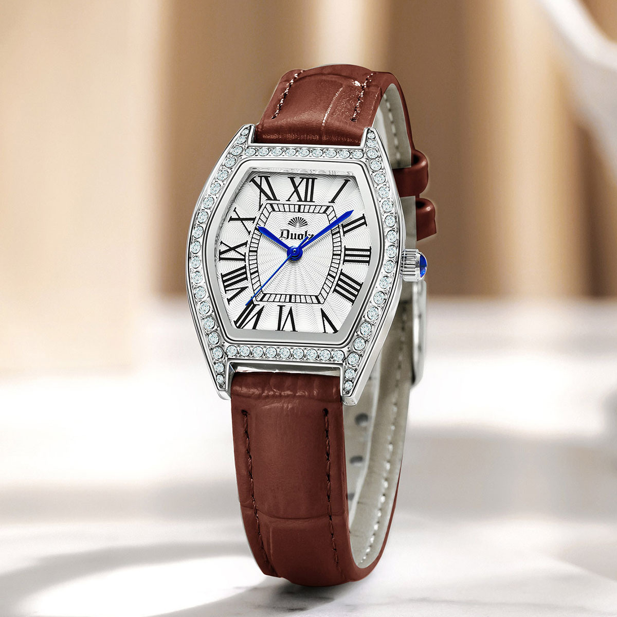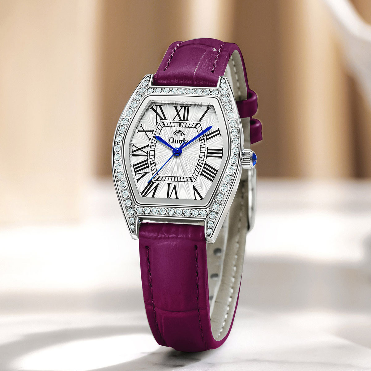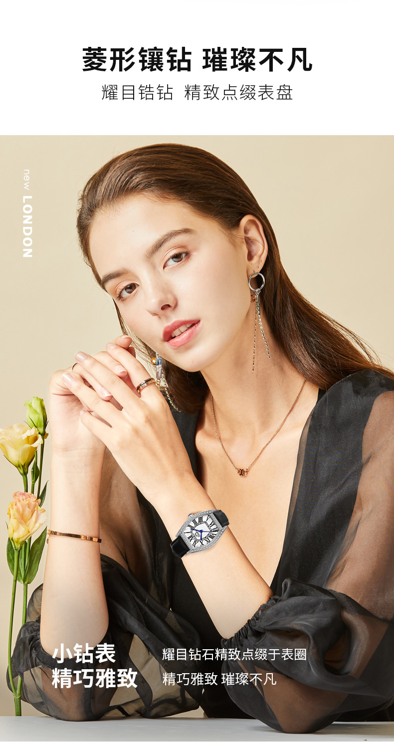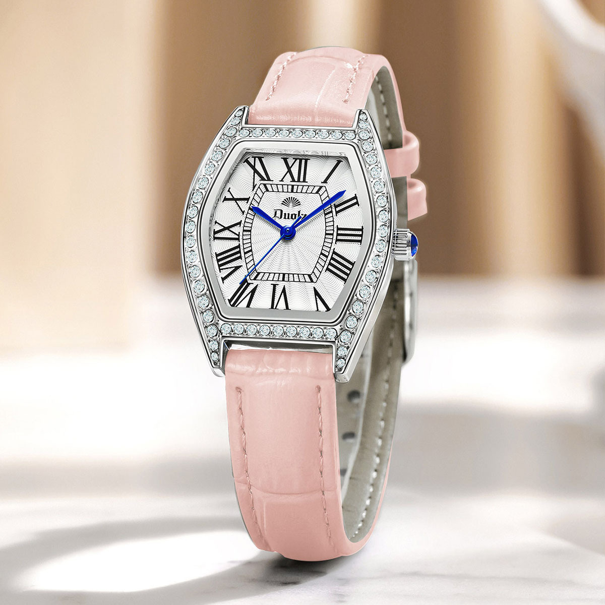 手表多伦兹DUOLZ新款满钻气质女士手表皮带款石英表手表手表手表