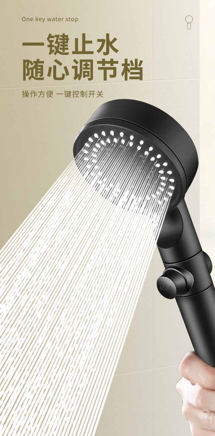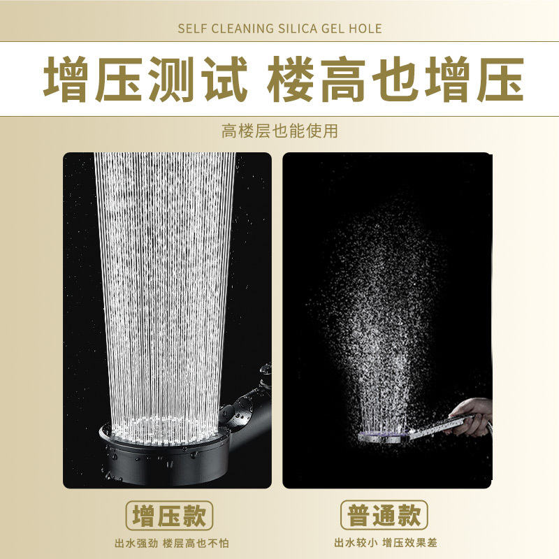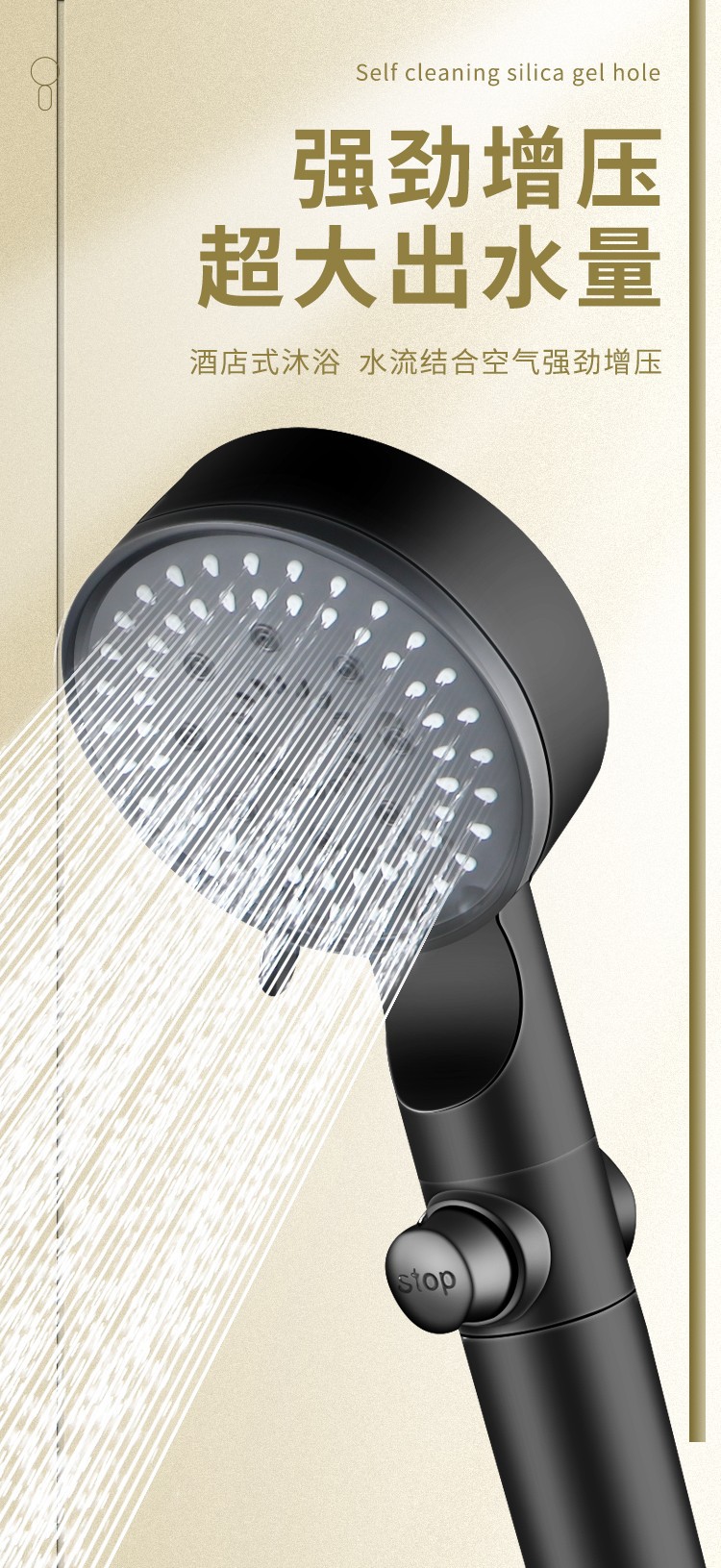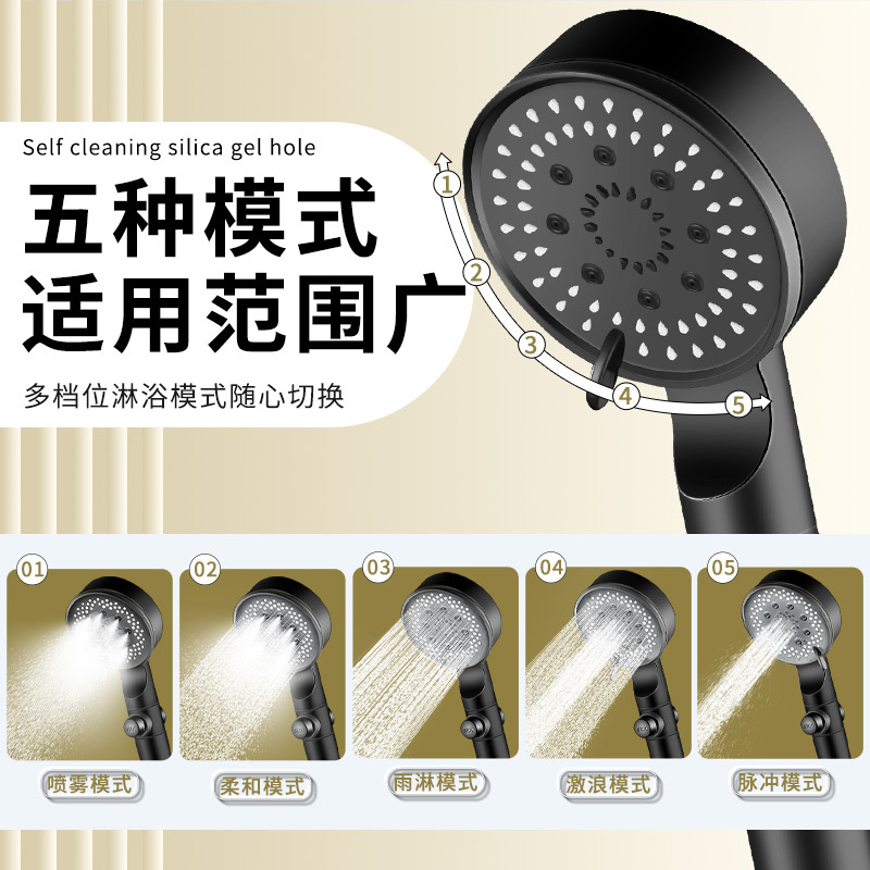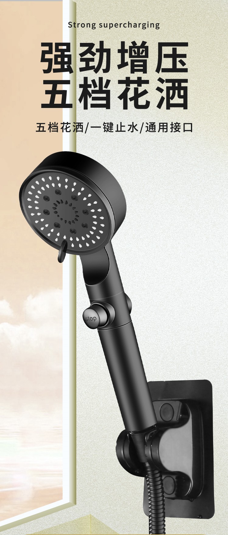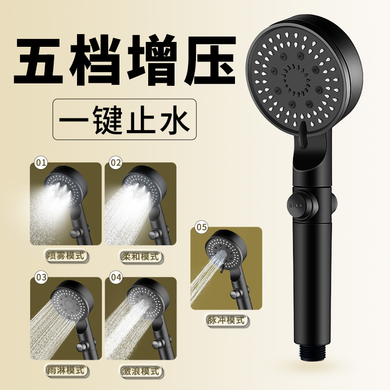 浴室增压浴霸家用热水器洗澡沐浴黑武士花洒喷雾喷头五档可止水