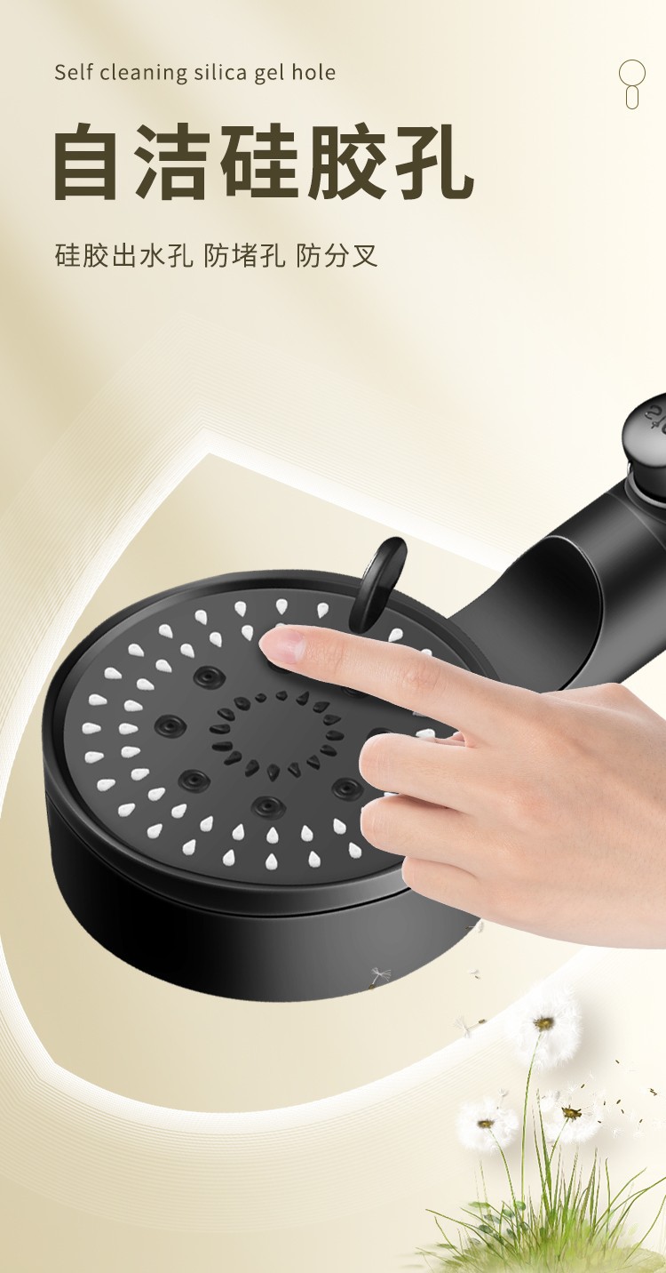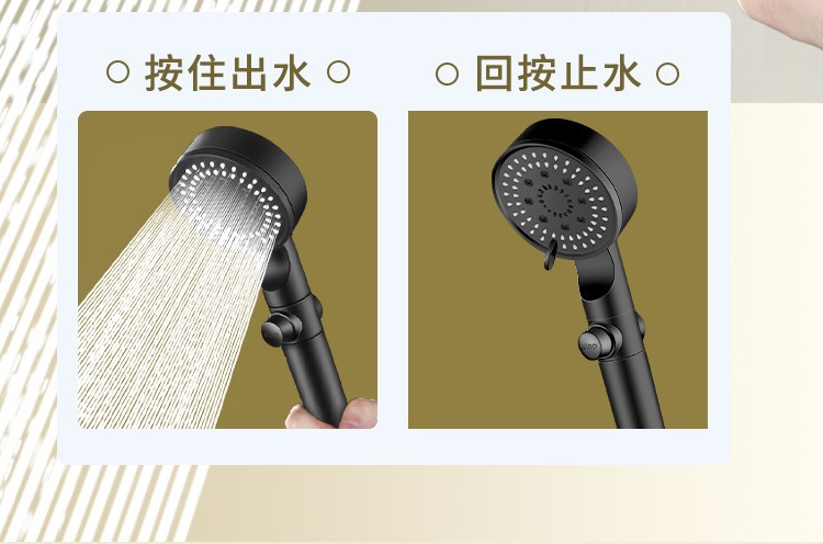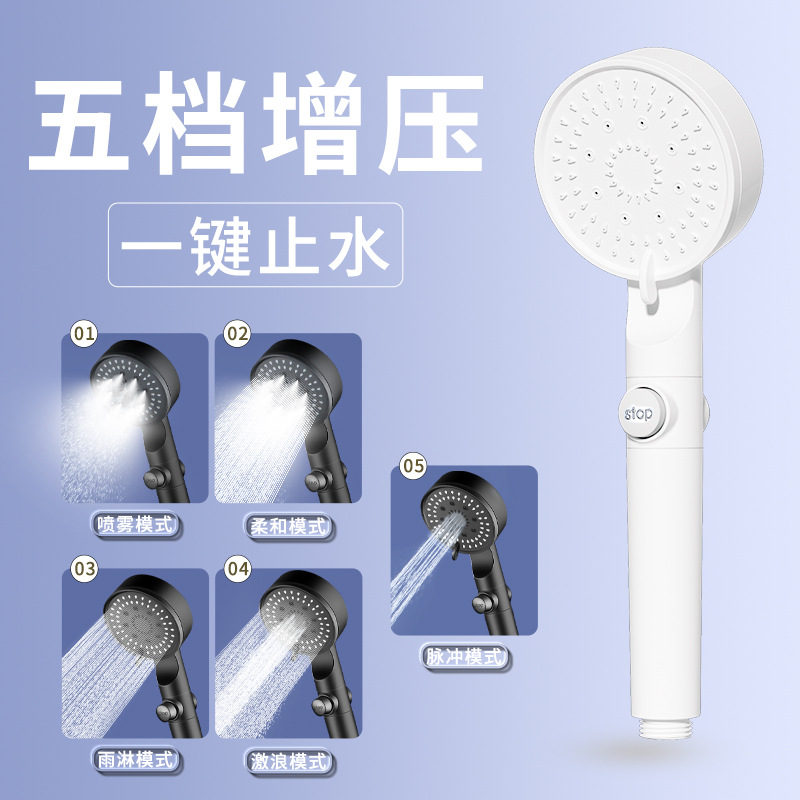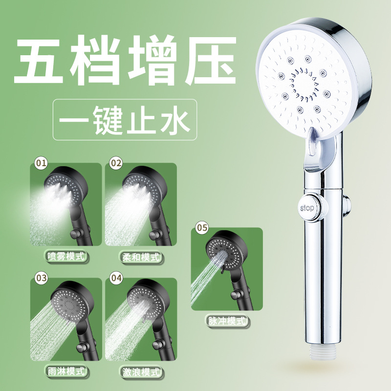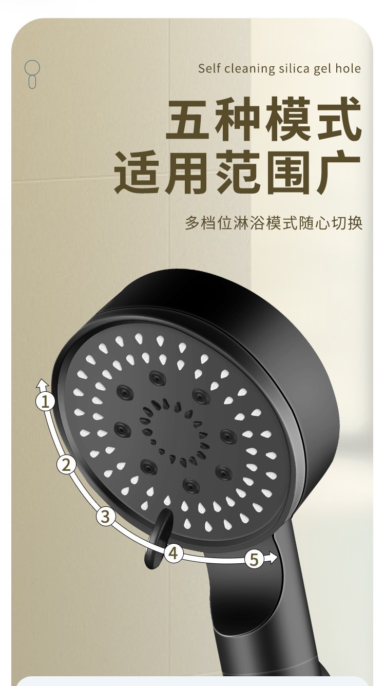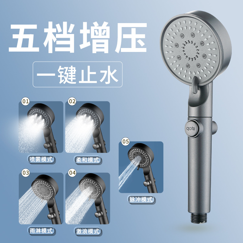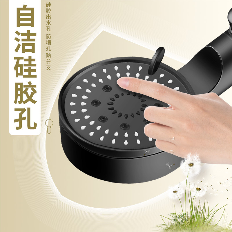 浴室增压浴霸家用热水器洗澡沐浴黑武士花洒喷雾喷头五档可止水