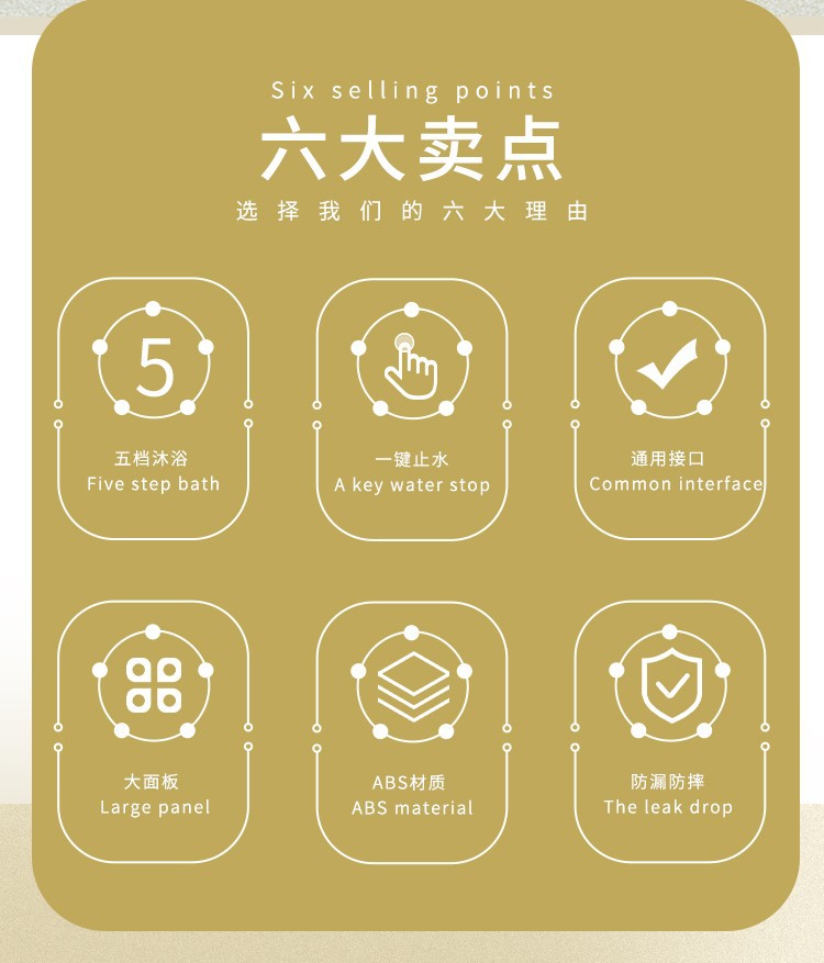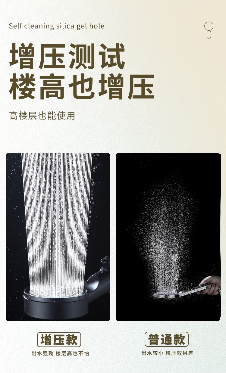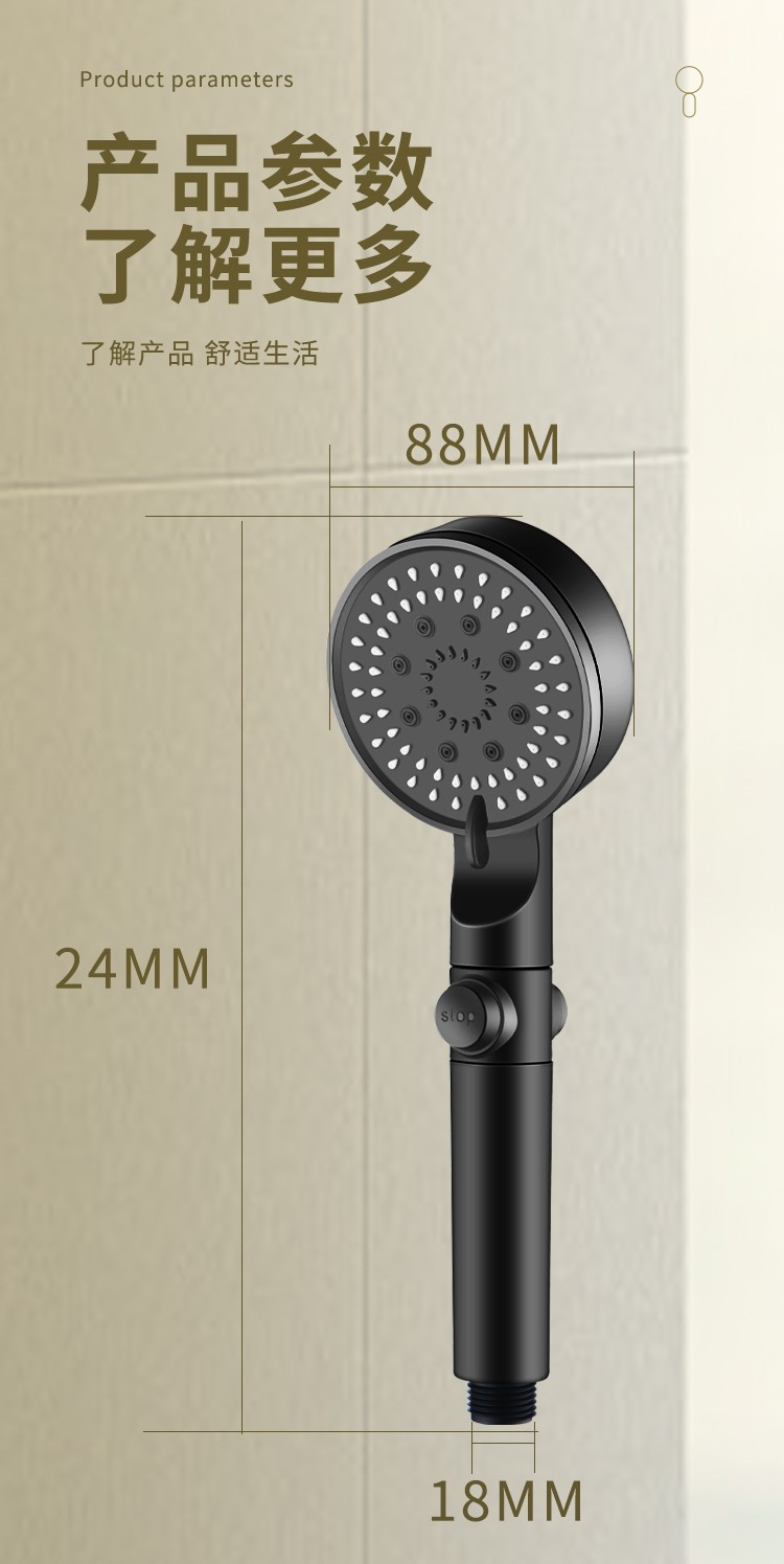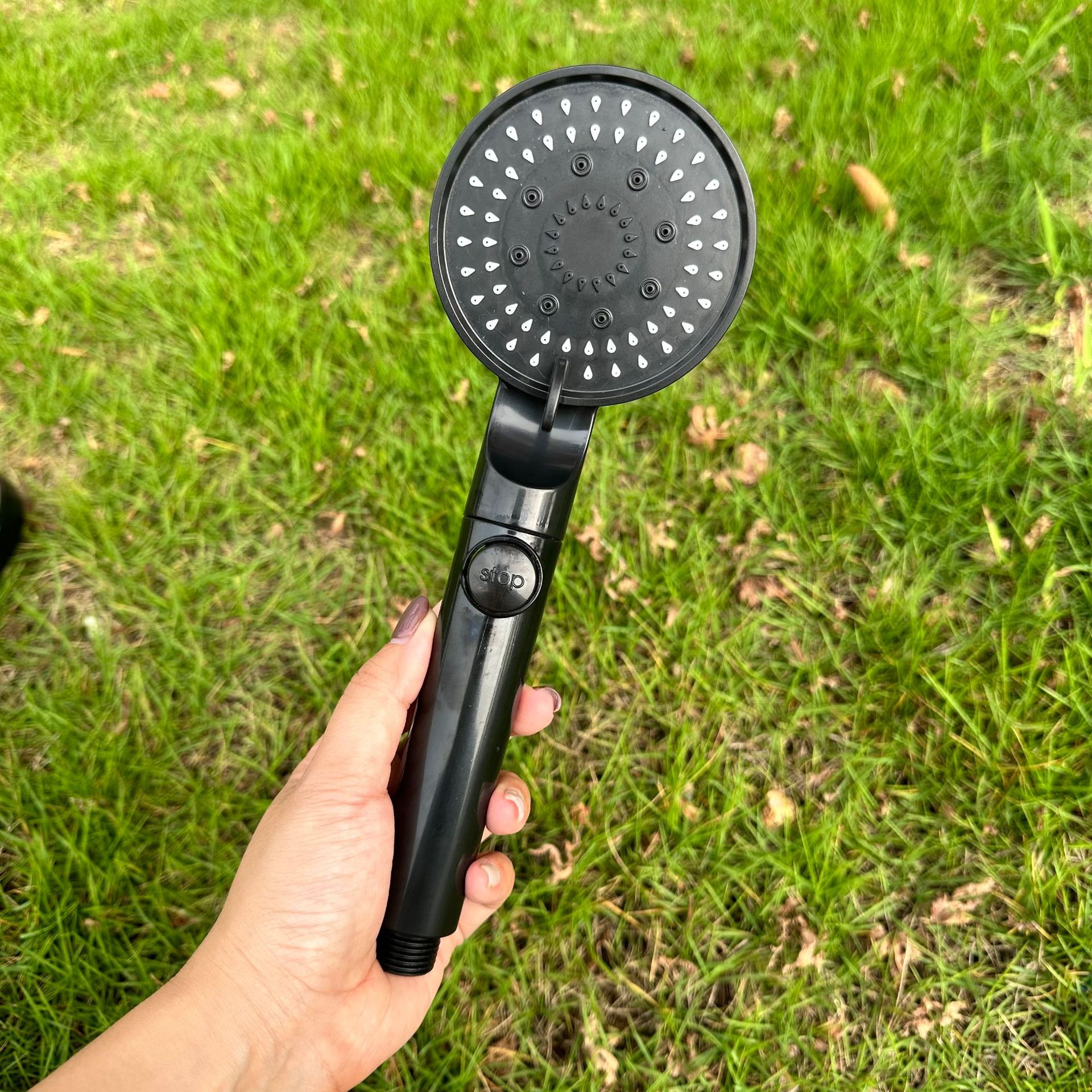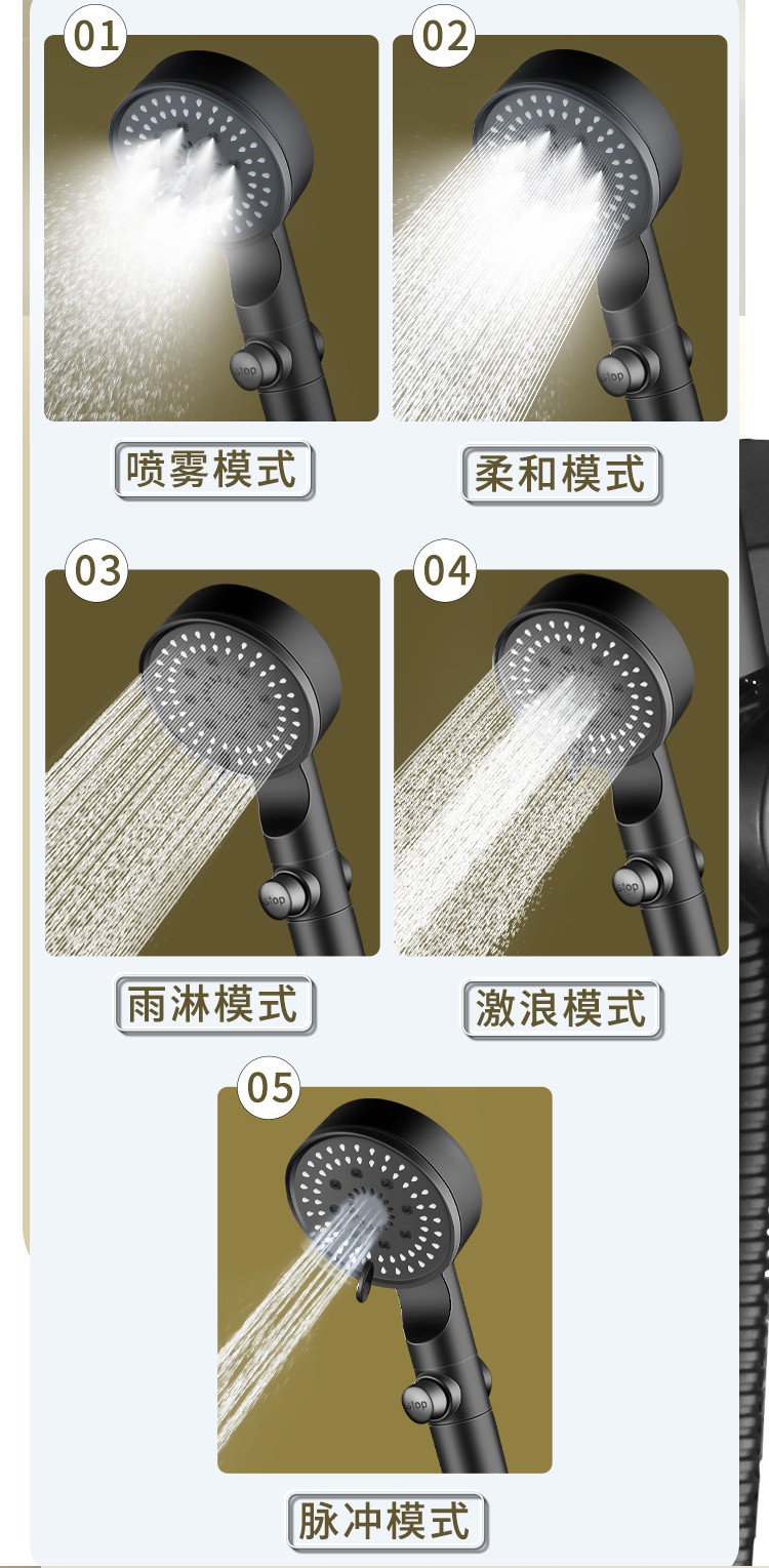 浴室增压浴霸家用热水器洗澡沐浴黑武士花洒喷雾喷头五档可止水
