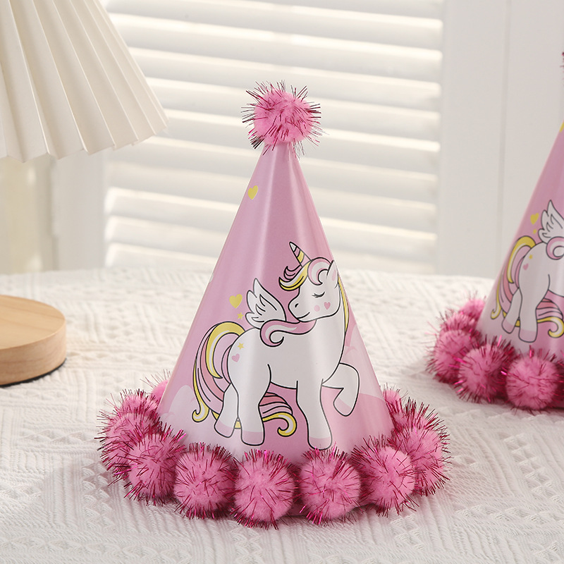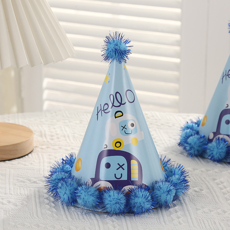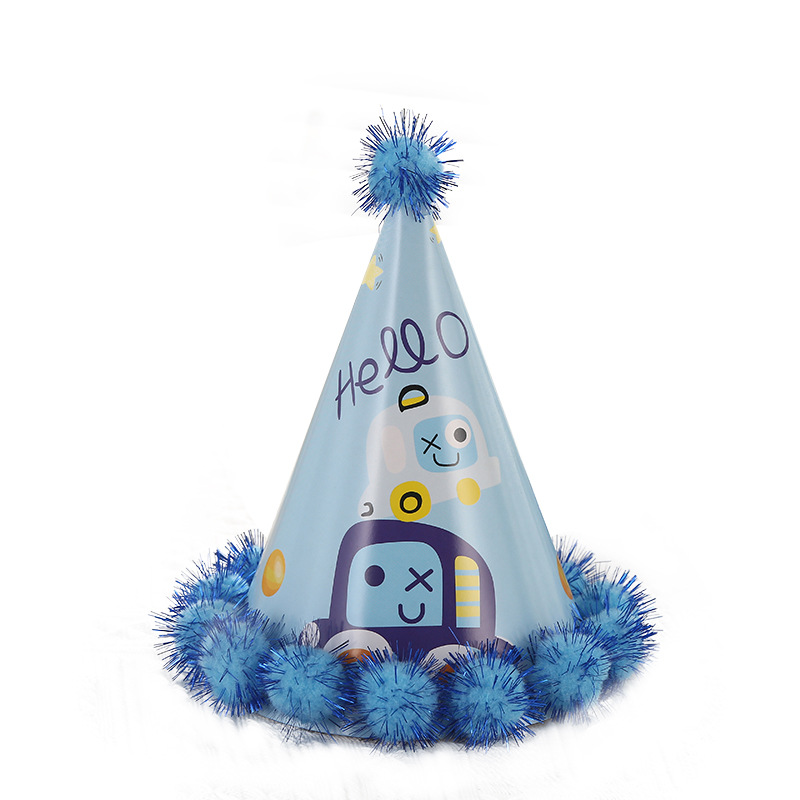 厂家批发卡通生日帽 毛球帽 成人儿童生日装饰帽子节日派对装饰品