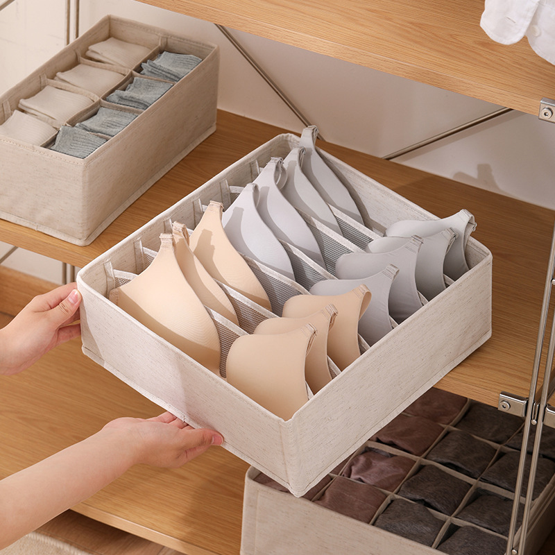 PP板可水洗天山棉麻收纳盒布艺折叠内衣内裤整理盒子整理师专用盒