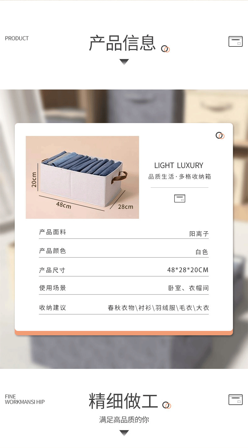 | Cotton and Linen Pp Plate Beige Storage Box 47*28 * 20cm(棉麻PP板米色收纳盒47*28*20CM) | USD $0.0 | 9532 piece available |