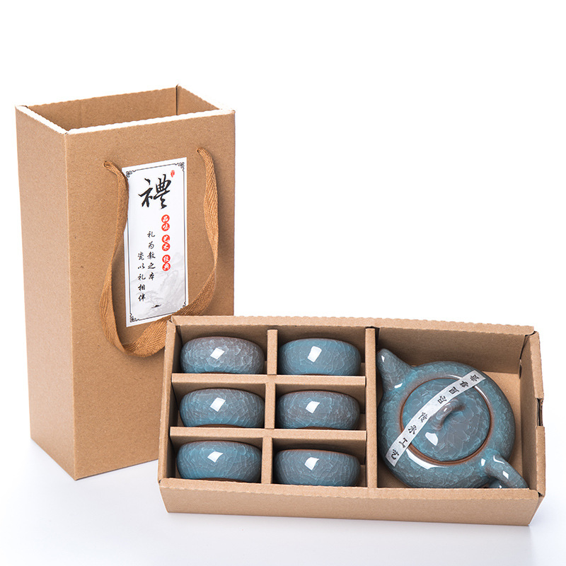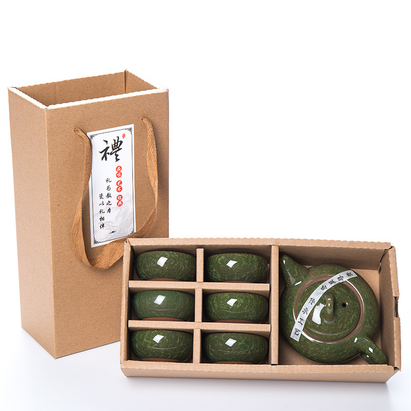 一壶六杯七彩冰裂陶瓷功夫茶具套装整套活动小礼品伴手礼印字