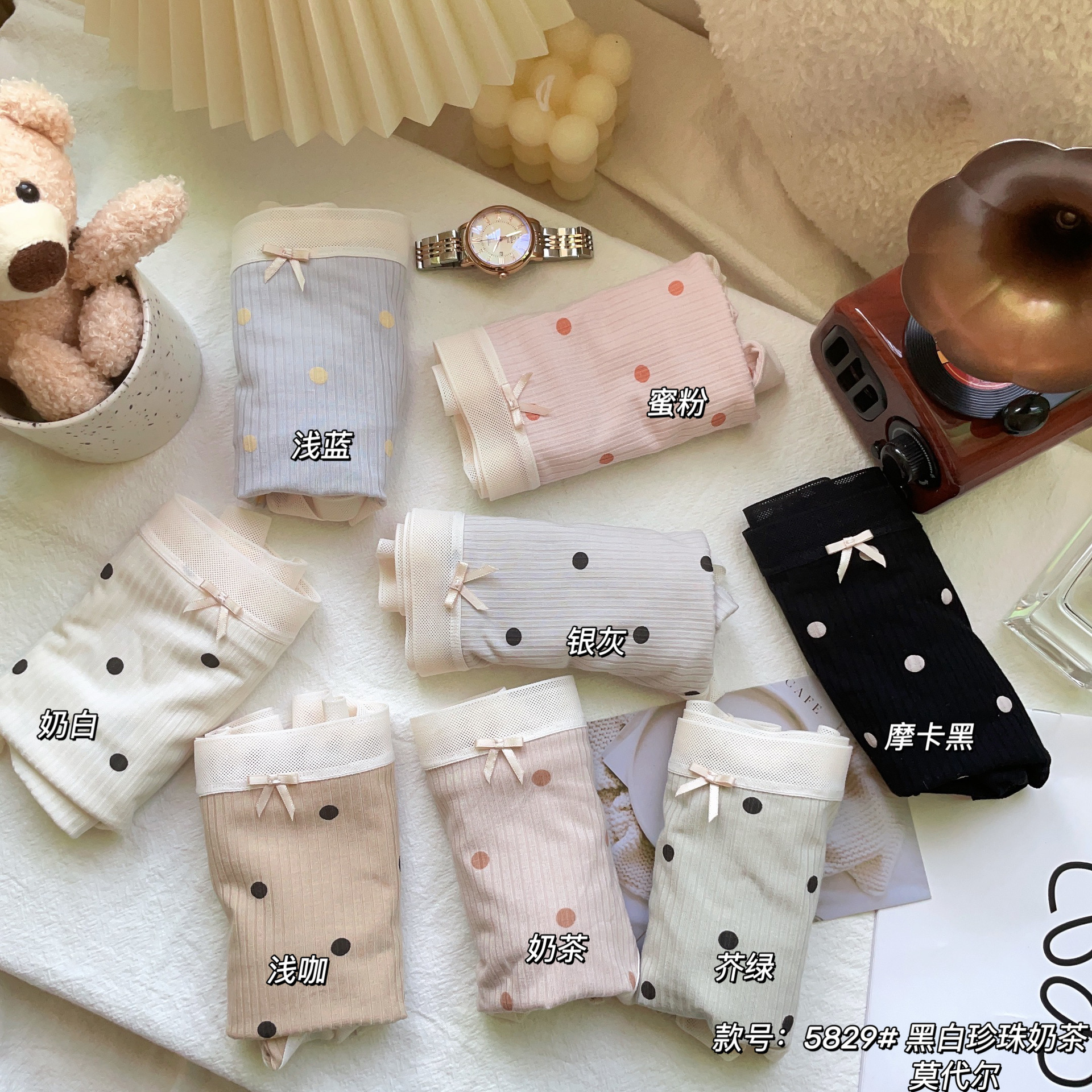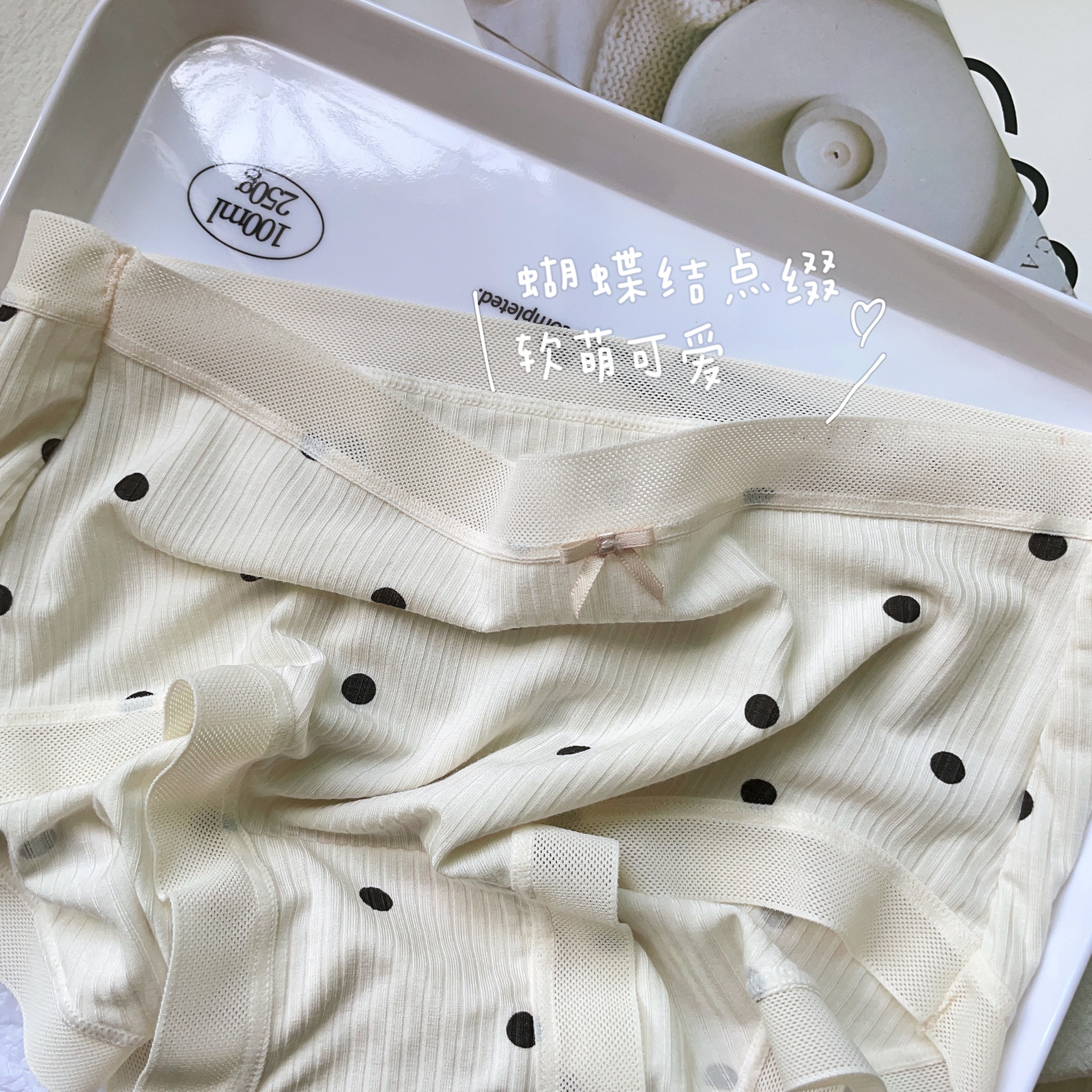 日系可爱蝴蝶结波点螺纹少女内裤亲肤透气底档无痕中腰女三角内裤