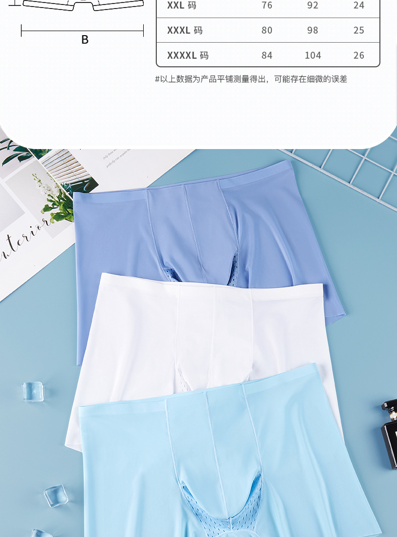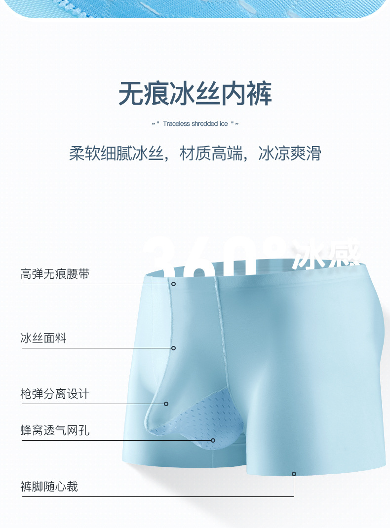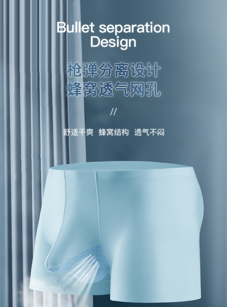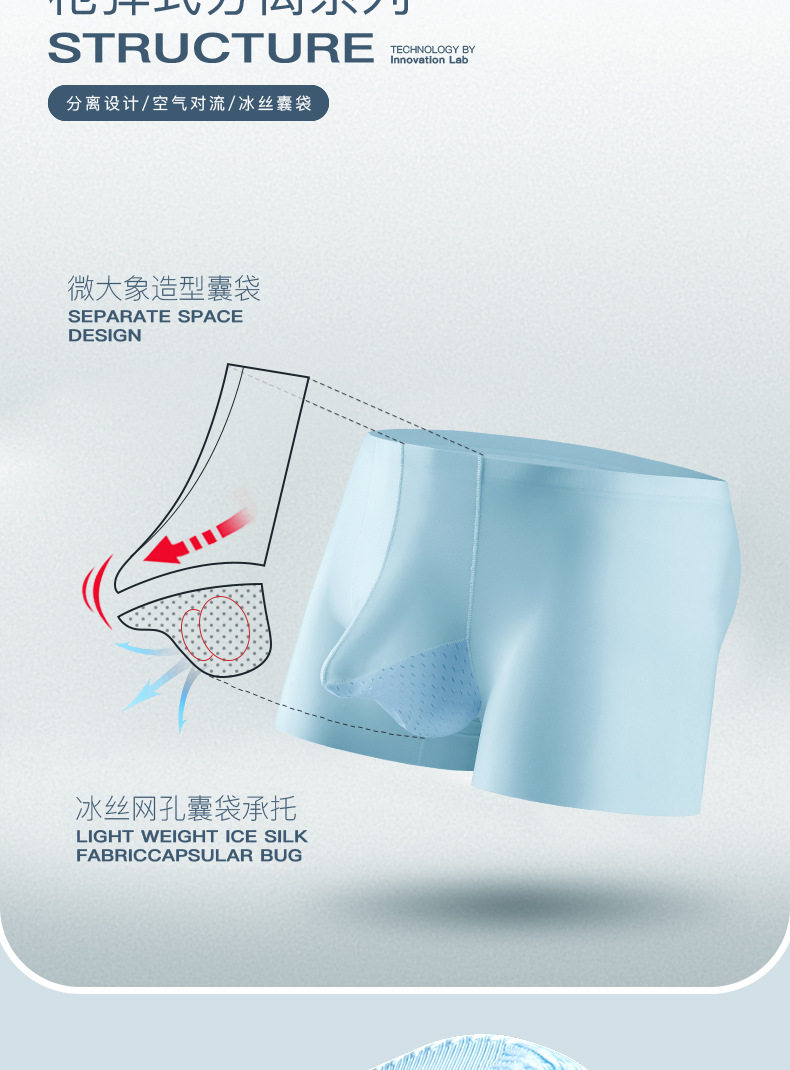 枪弹式分离内裤男士冰丝超薄裸感走光无痕男生分仓大象鼻子平角裤