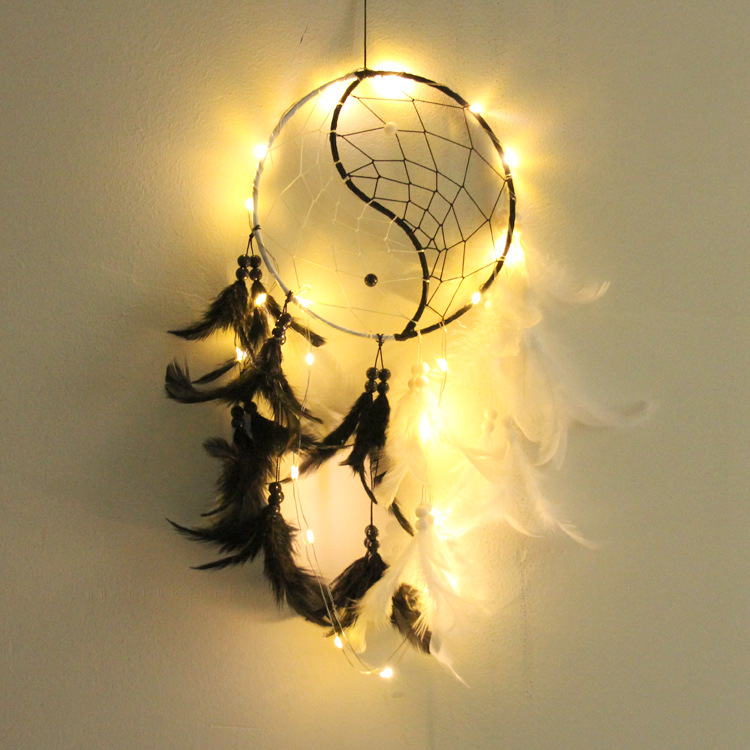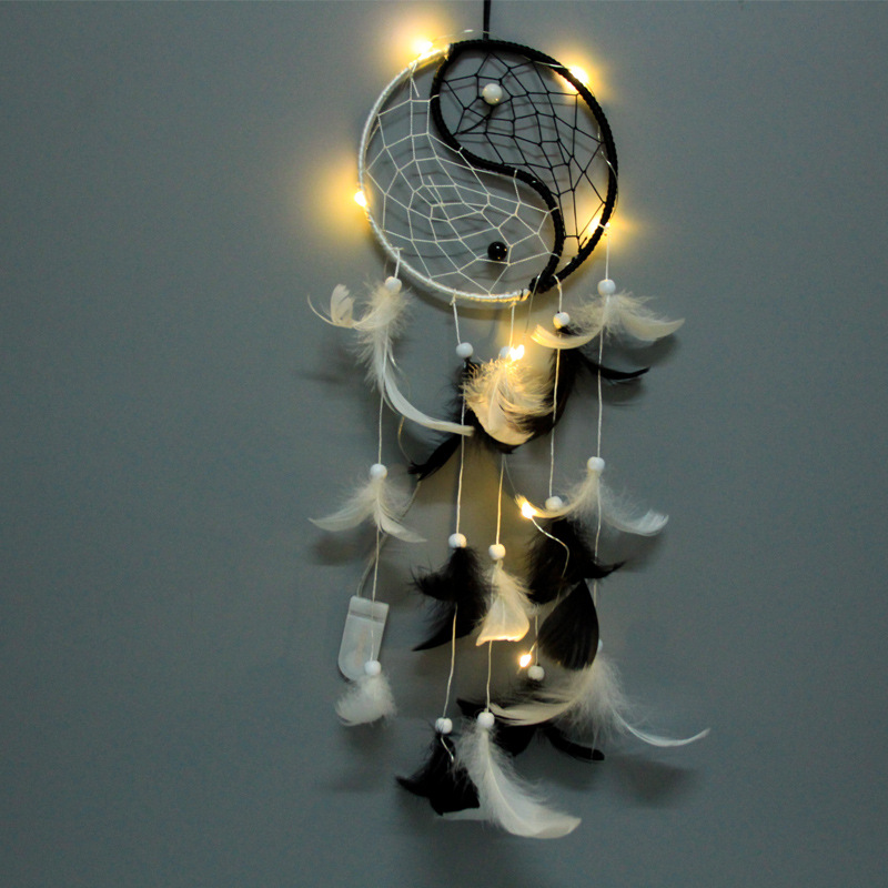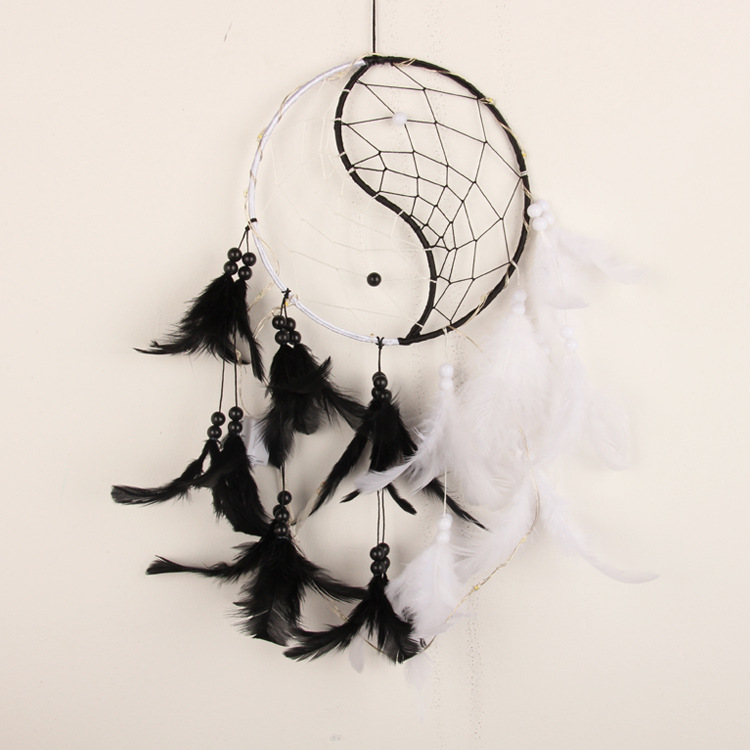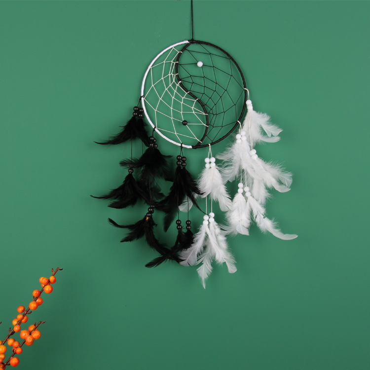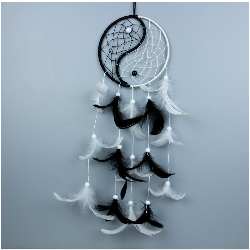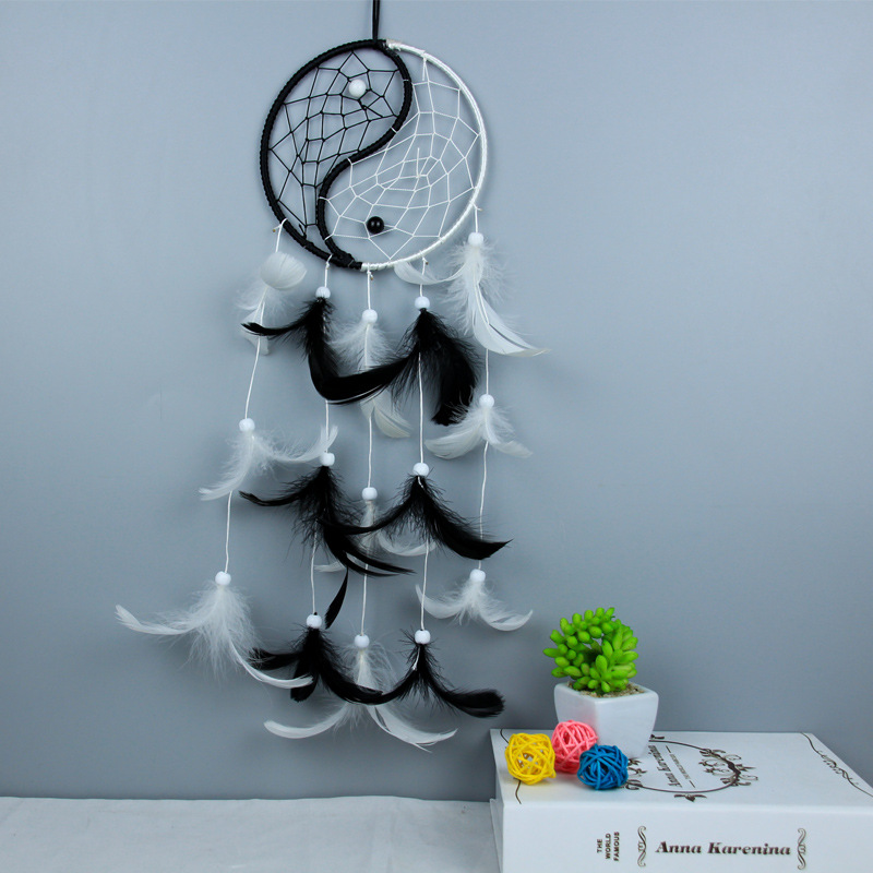 阴阳太极捕梦网黑色创意几何羽毛风铃黑白室内吊饰中国风挂件