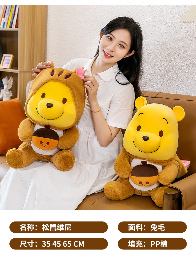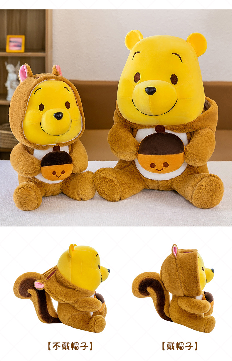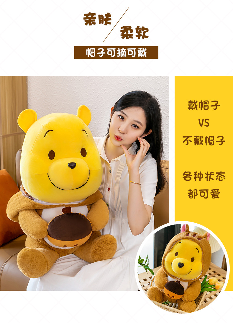 毛绒玩具噗噗小熊维尼公仔帽子可脱布娃娃玩偶睡觉抱抱熊厂家批发
