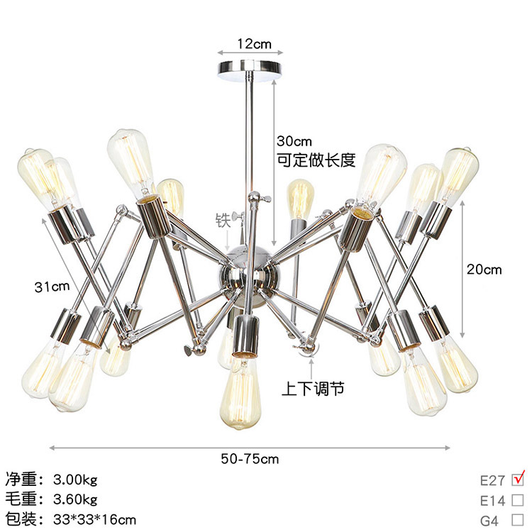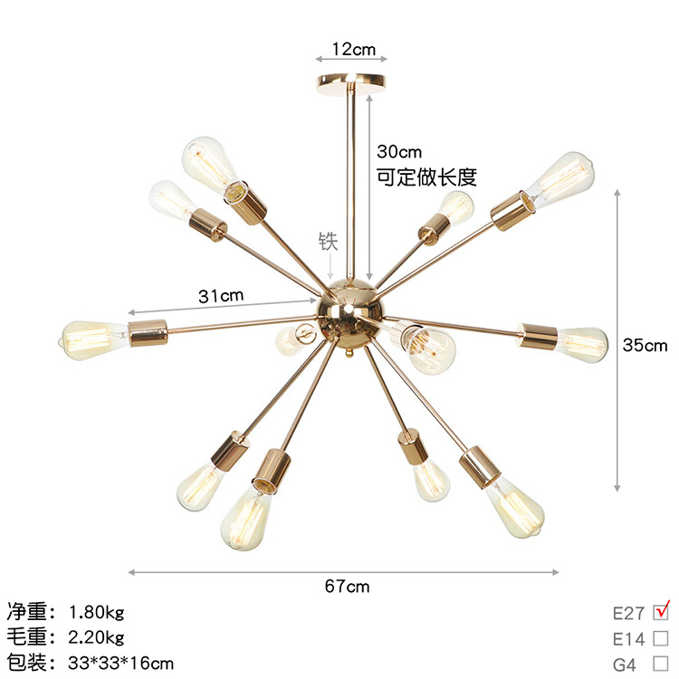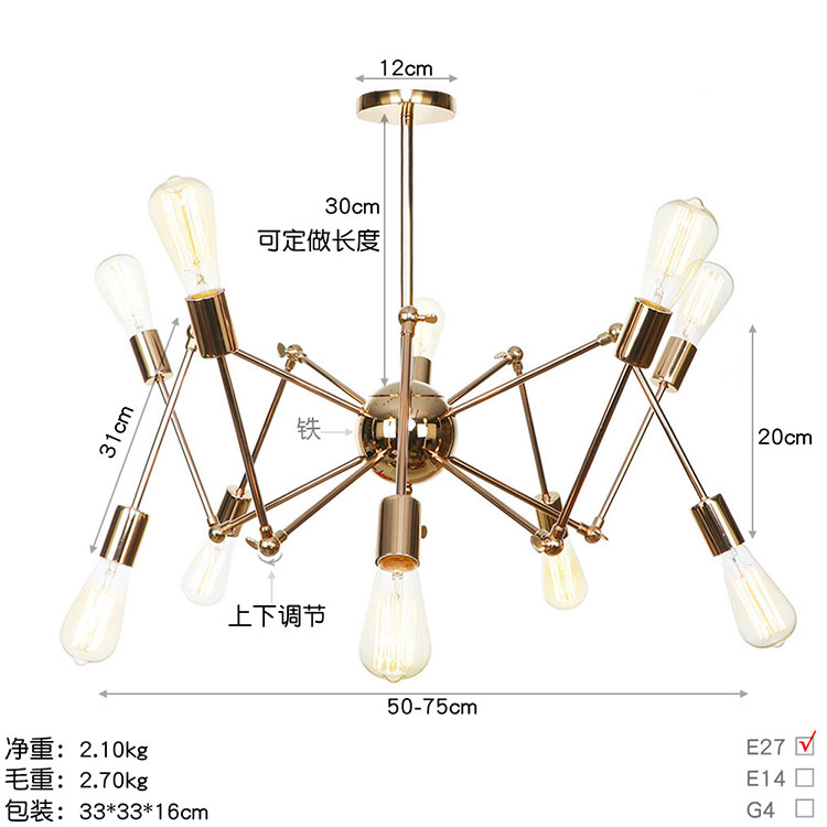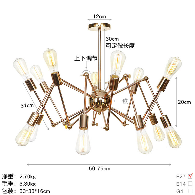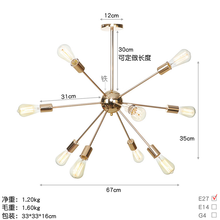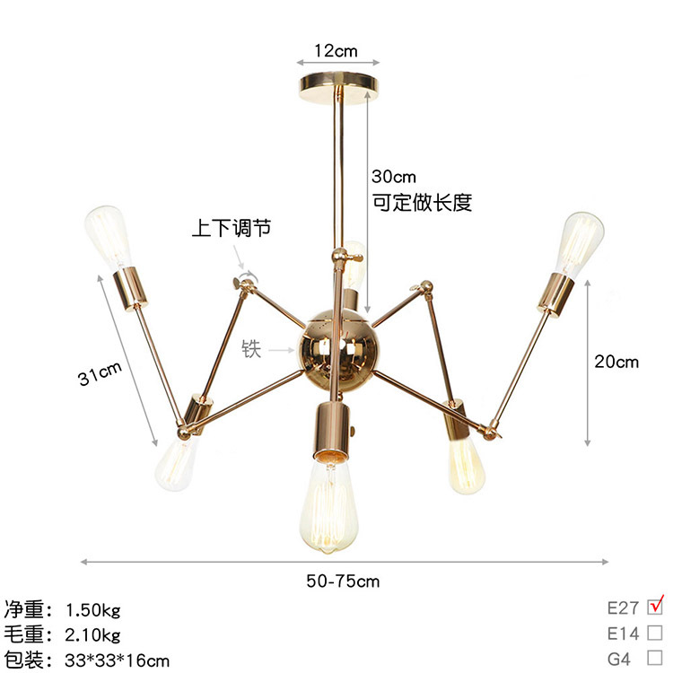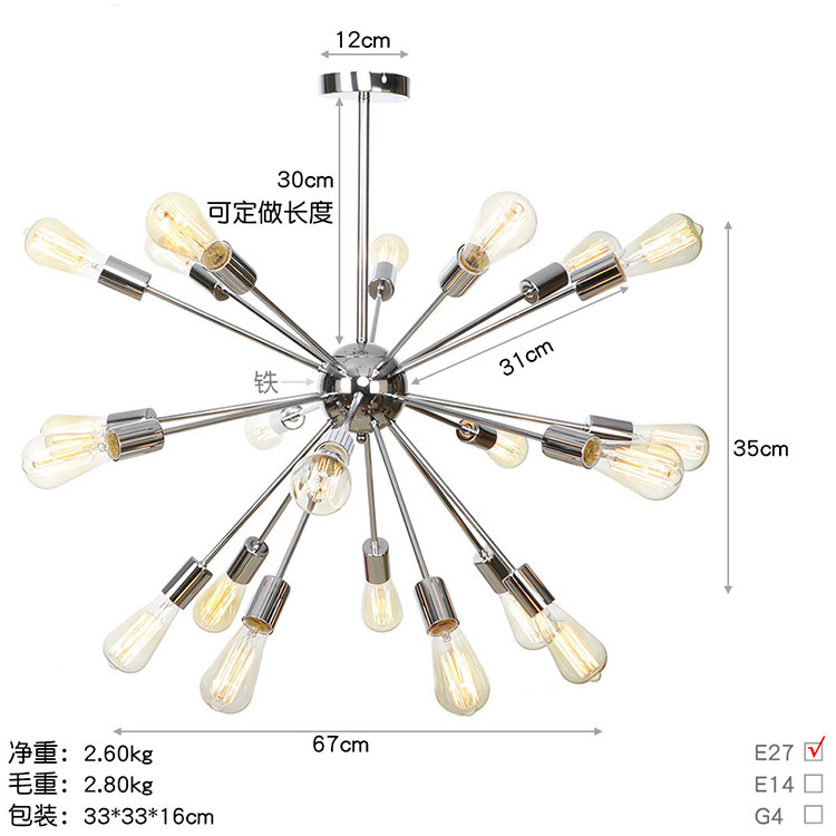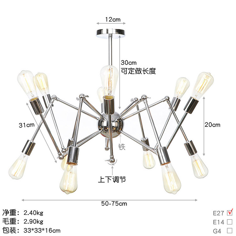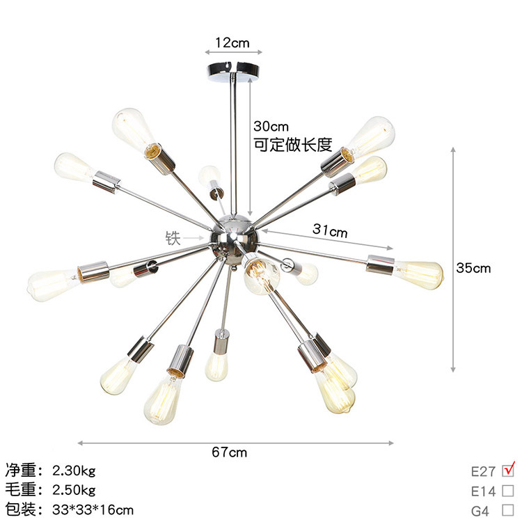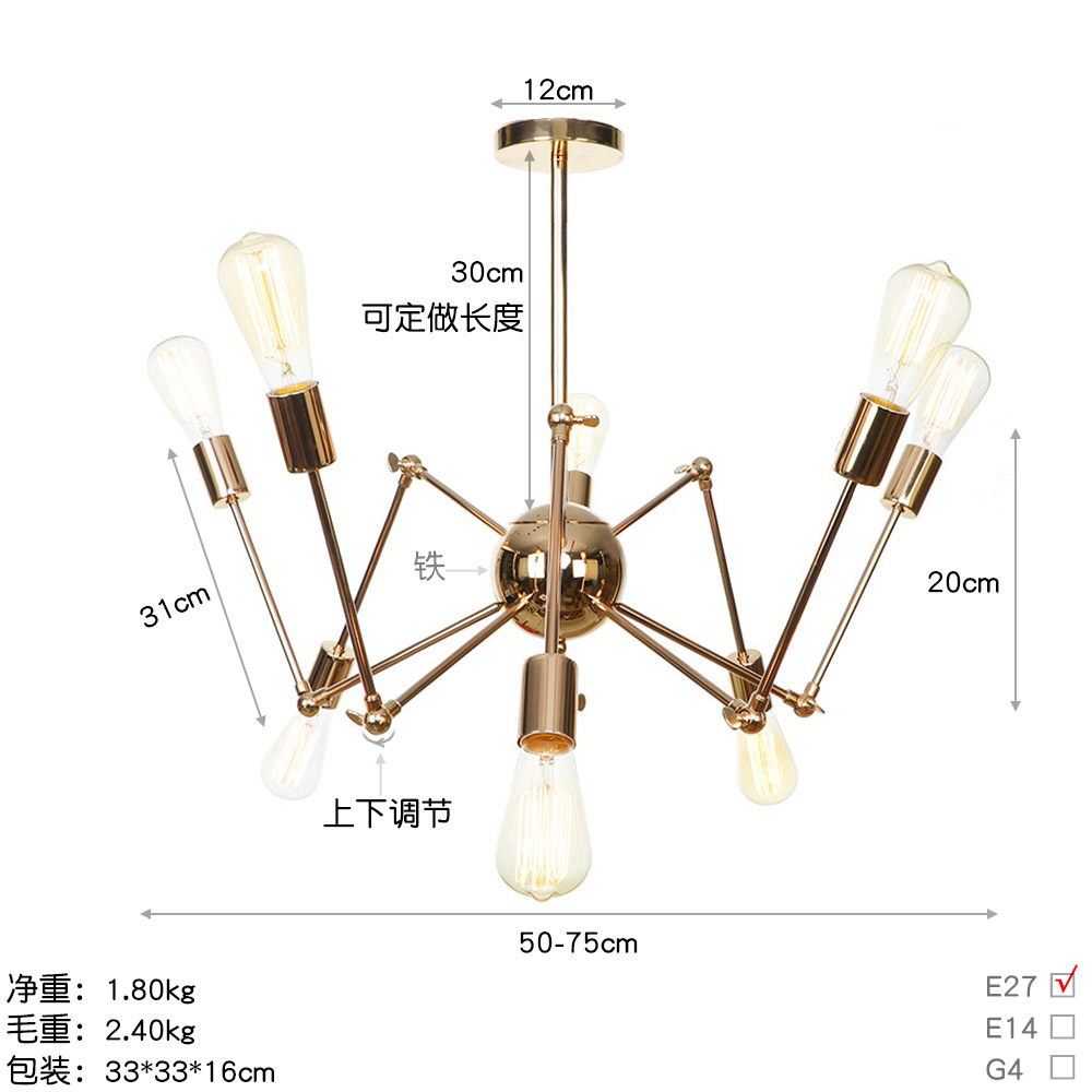 外贸专供美式个性简约客厅北欧风铬色法国金多头卫星蜘蛛吊灯