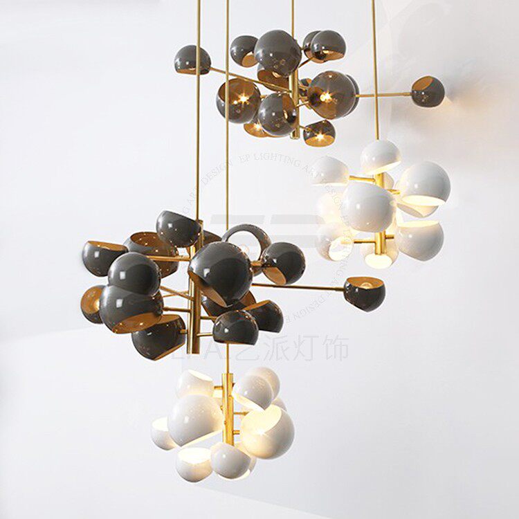 外贸专供艺派灯饰后风格艺术设计别墅客厅样板房商场圆球粒子吊灯