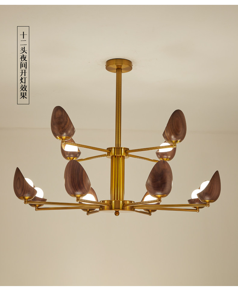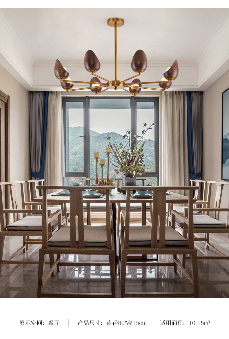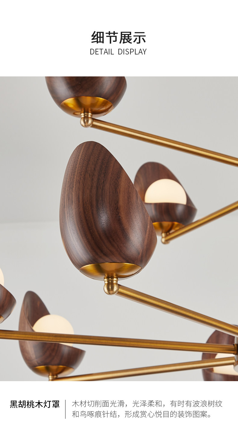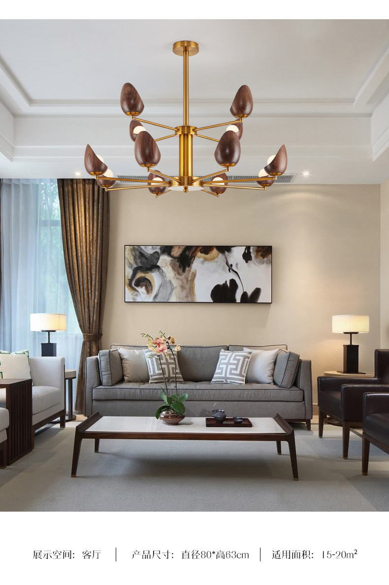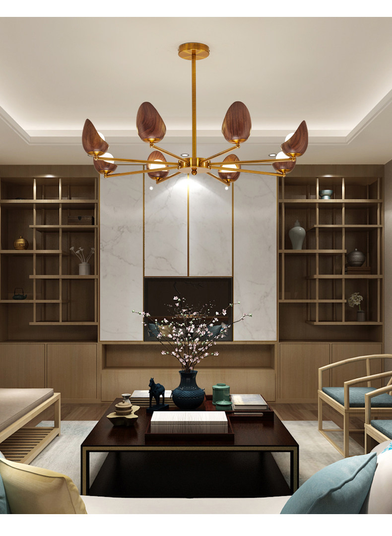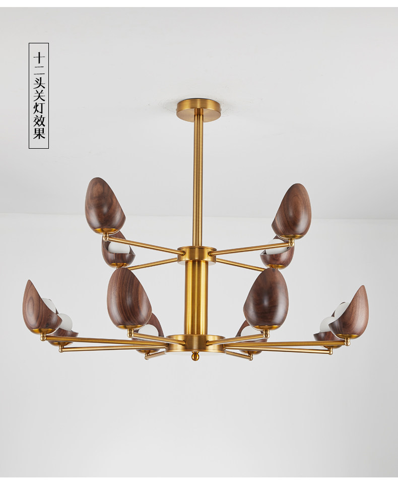 外贸专供家用个性灯具新中式胡桃实木大气客厅灯别墅大厅艺术吊灯