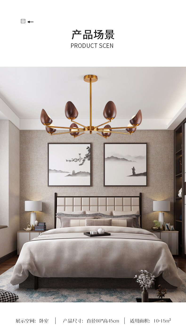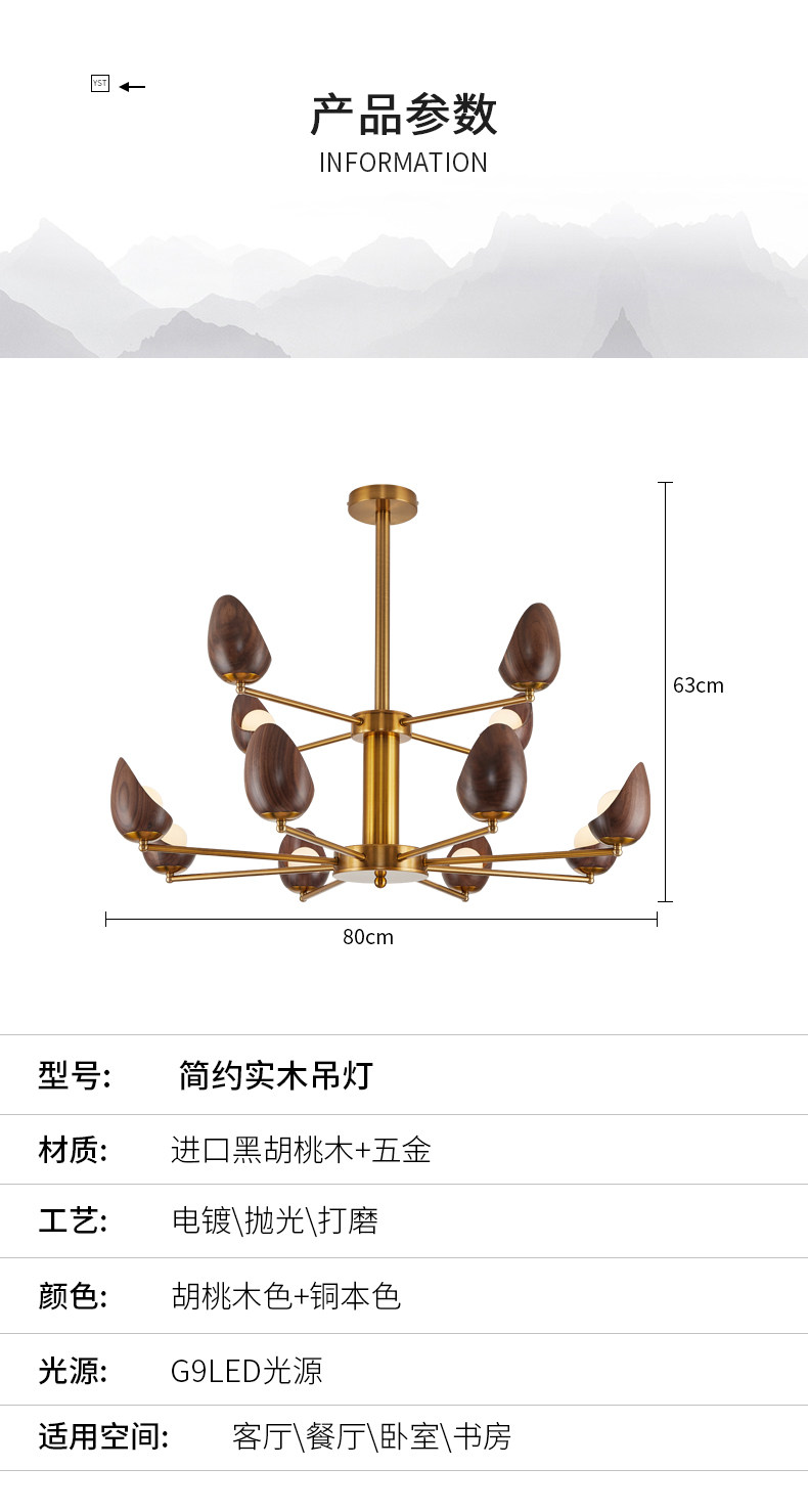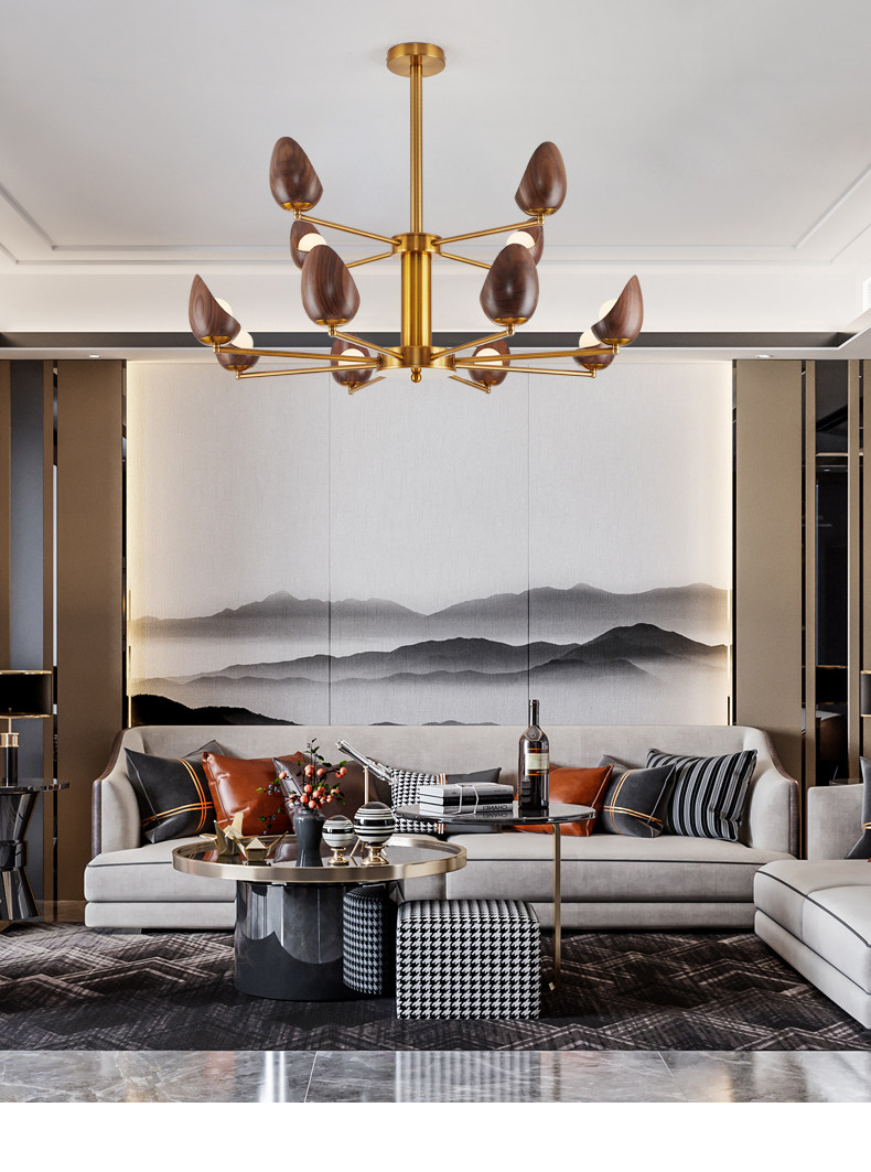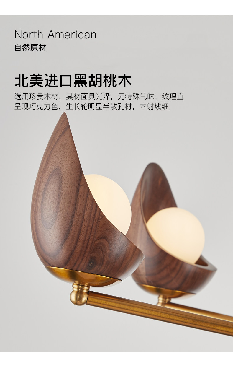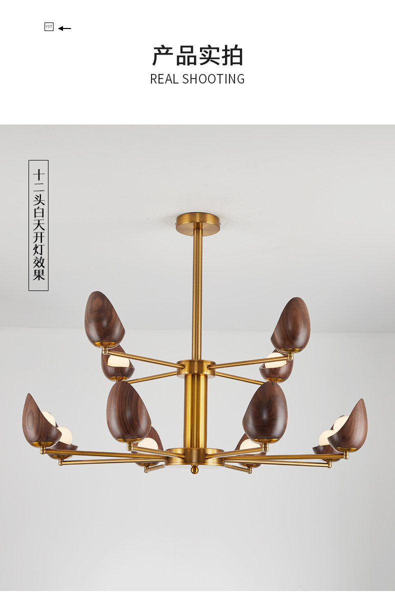 外贸专供家用个性灯具新中式胡桃实木大气客厅灯别墅大厅艺术吊灯