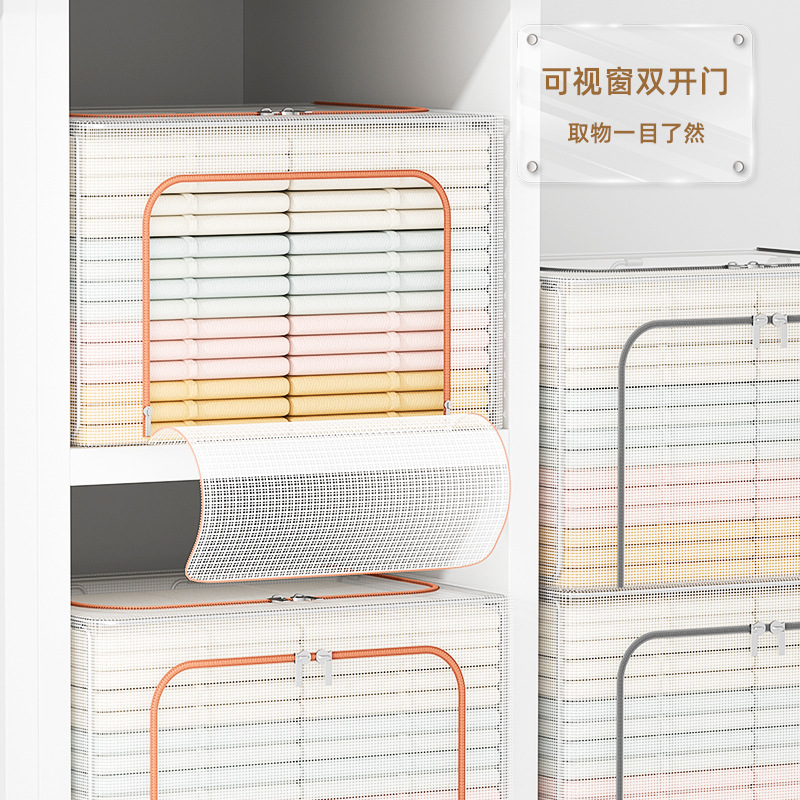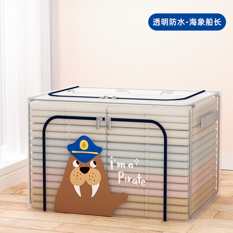 夹网折叠收纳箱批发透明收纳置物箱卡通布艺百纳箱衣服收纳整理箱
