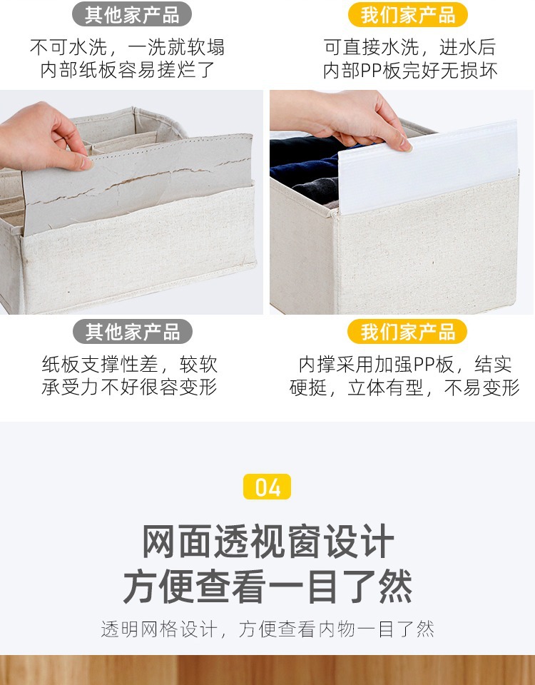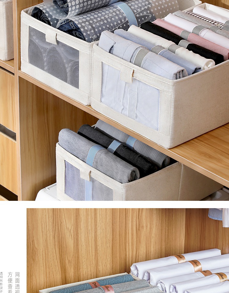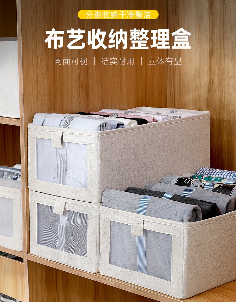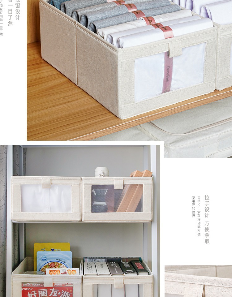 抖音爆款布艺可视窗收纳盒衣物收纳无分格抽屉收纳无盖裤子收纳盒