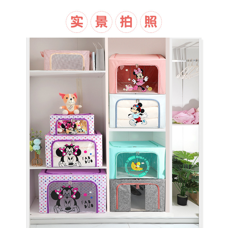 加粗钢架卡通大视窗布艺收纳整理箱 批发防水可折叠牛津布百纳箱