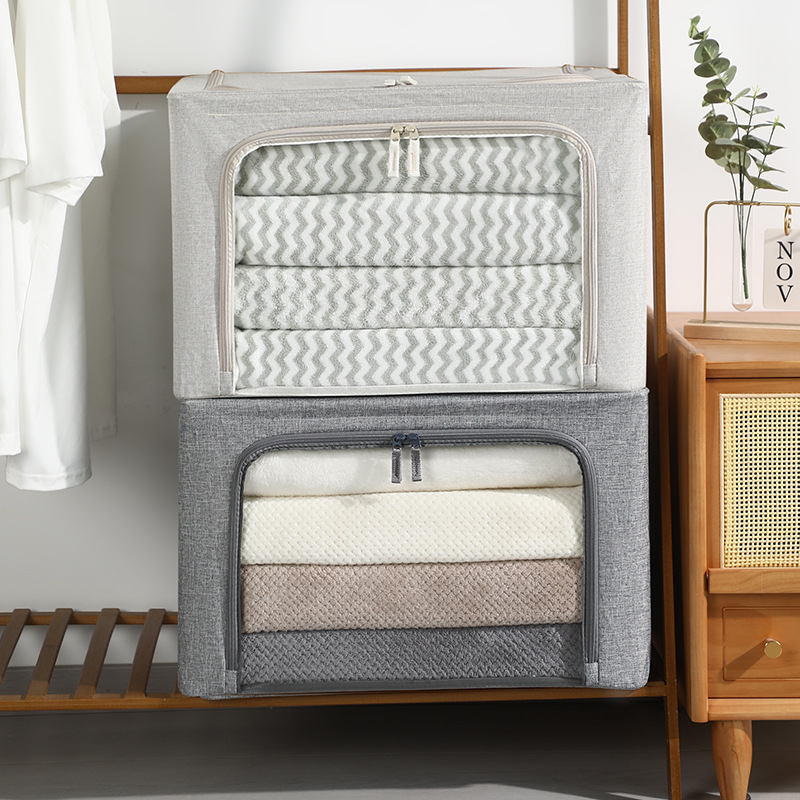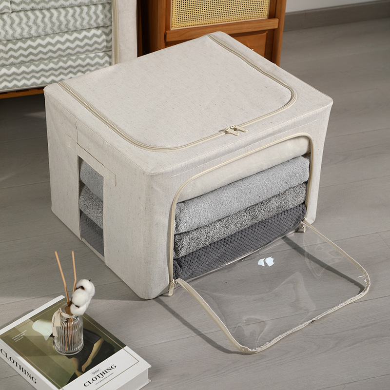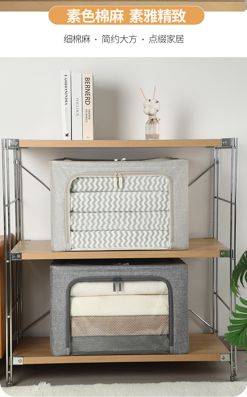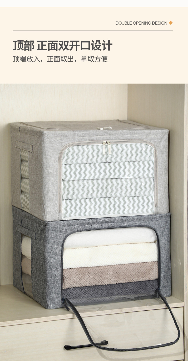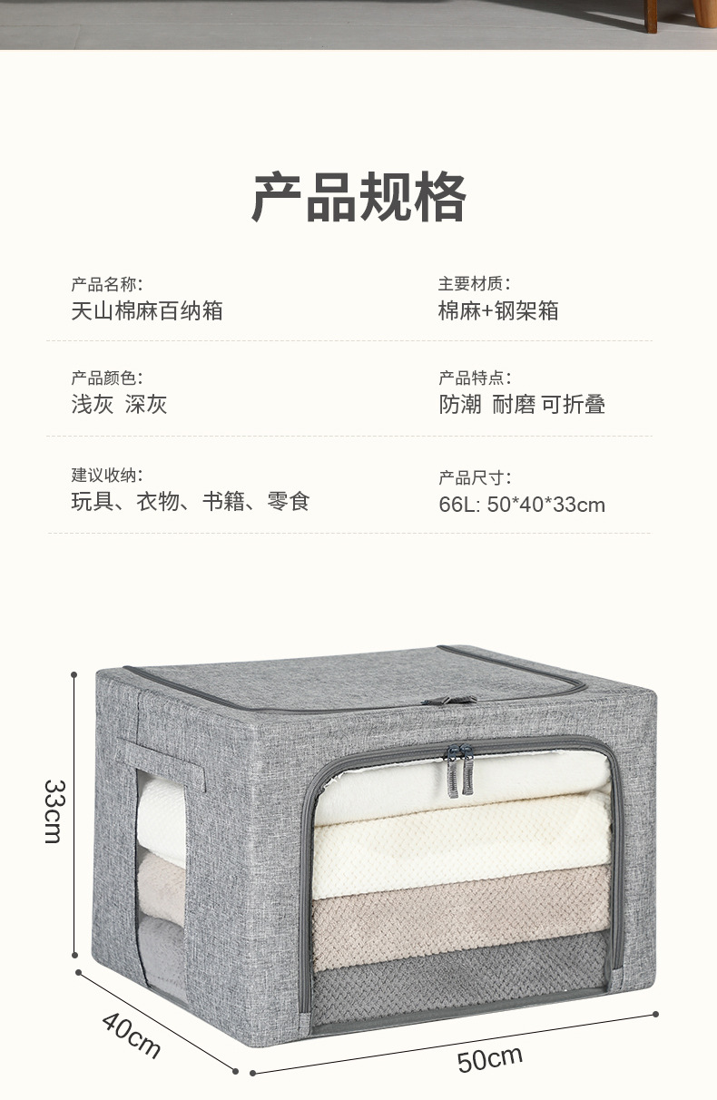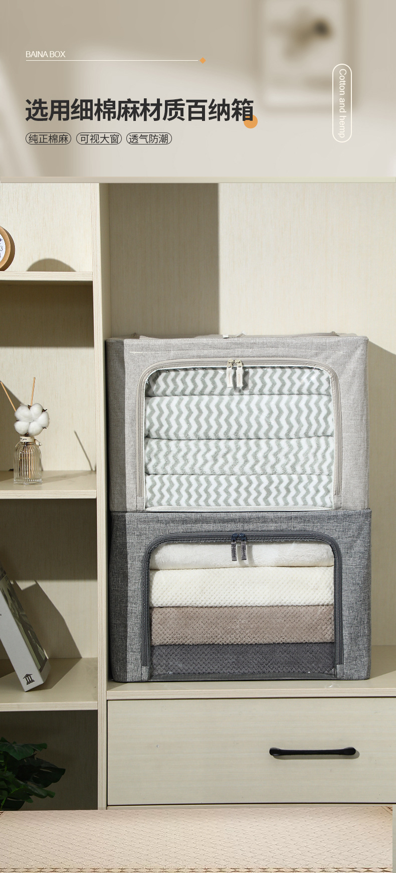 加厚细麻收纳箱大视窗衣物收纳箱布艺可折叠百纳箱杂物衣服整理箱