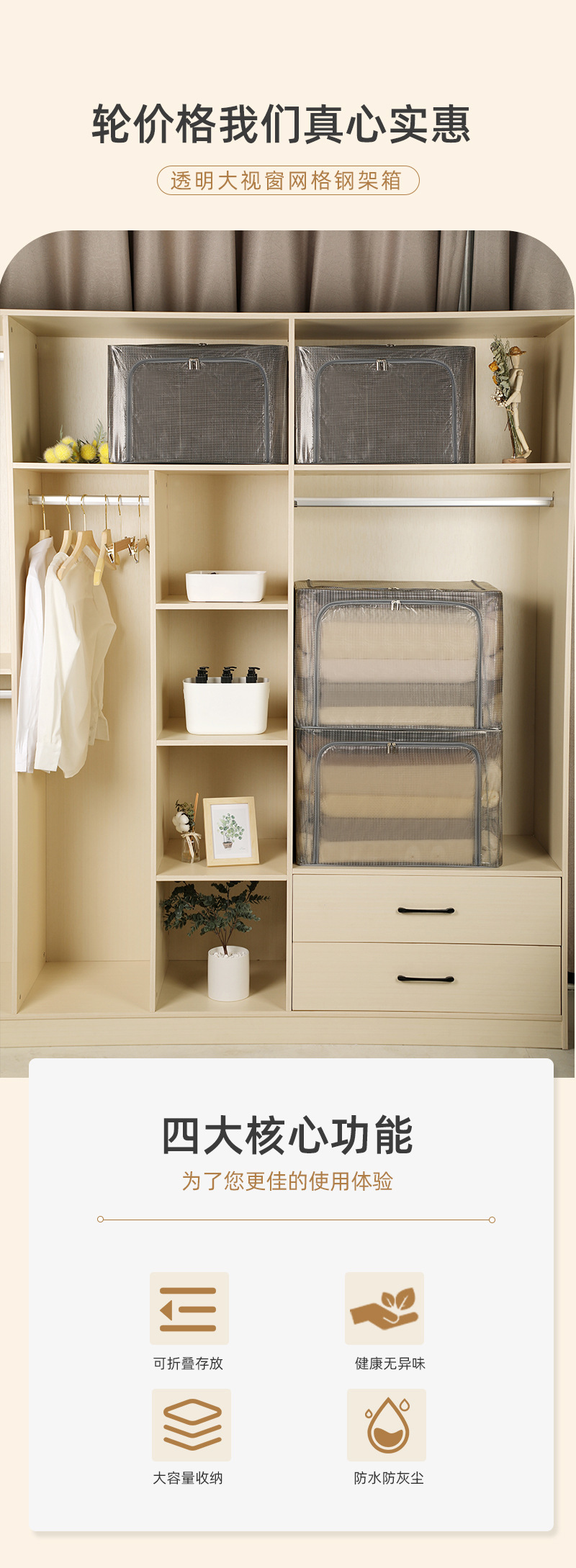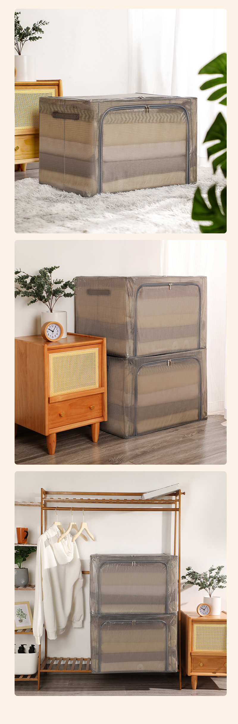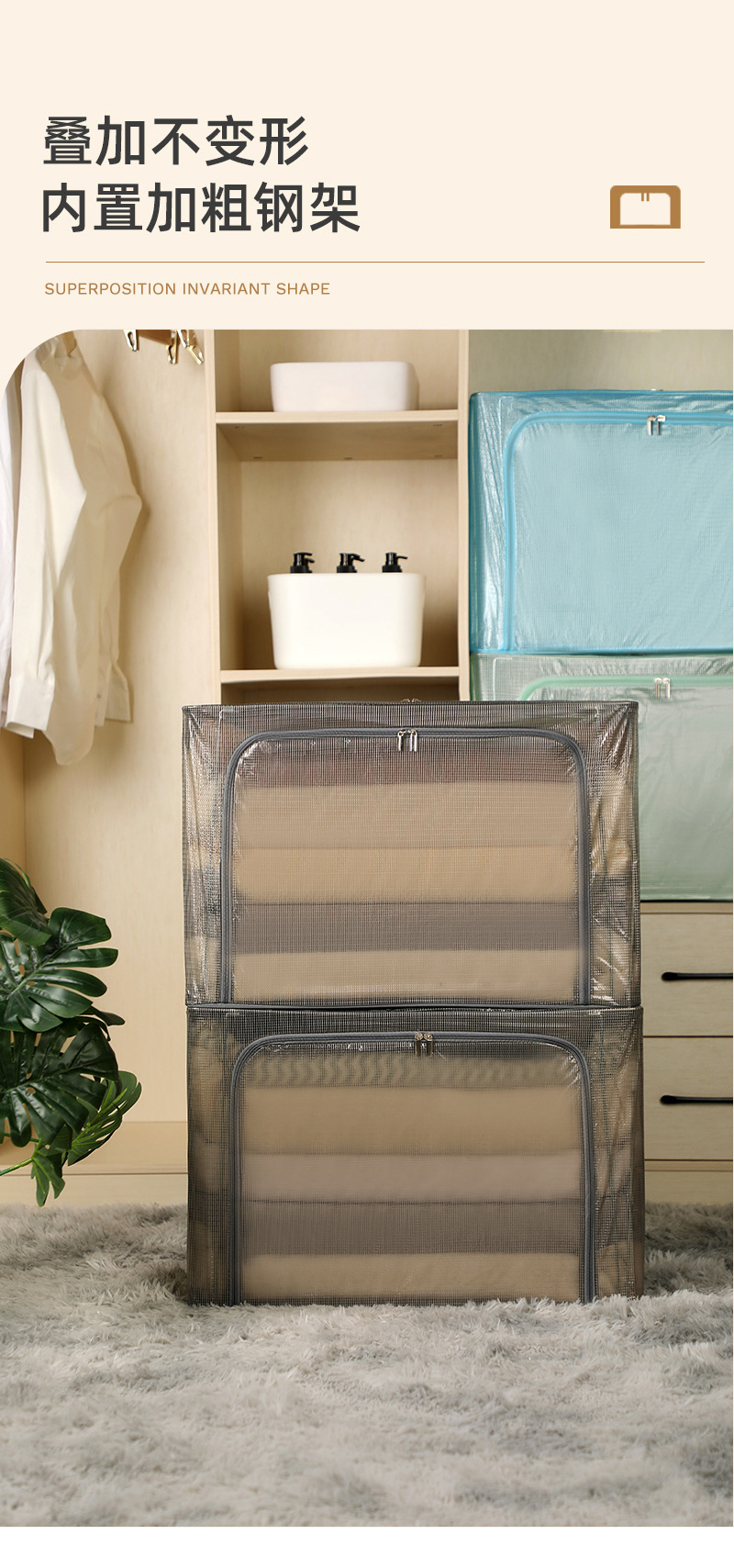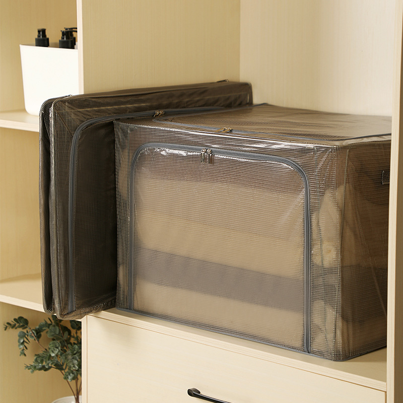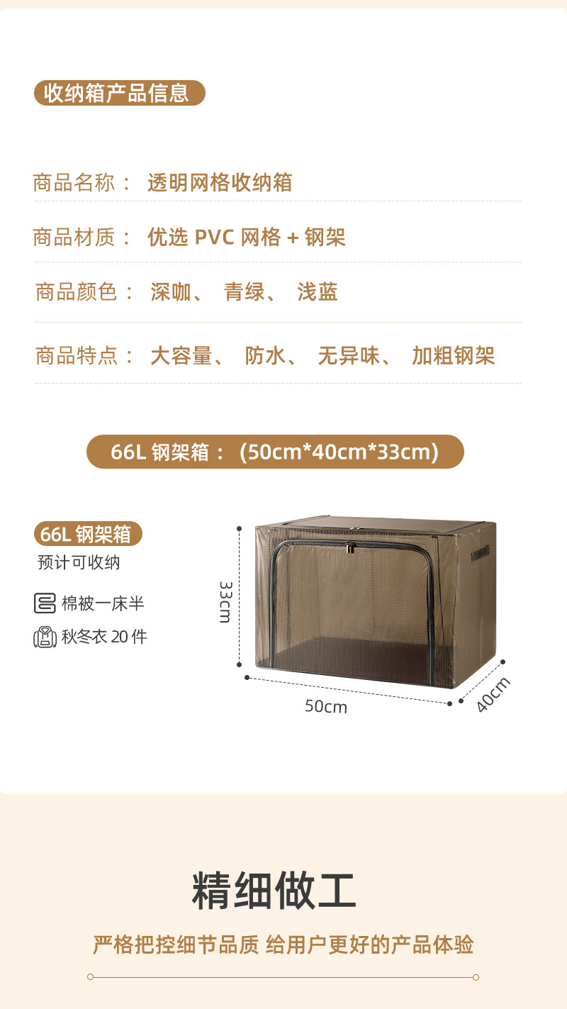 升级加粗钢架彩色透明收纳箱特大 PVC网格防水防尘百纳箱厂家批发