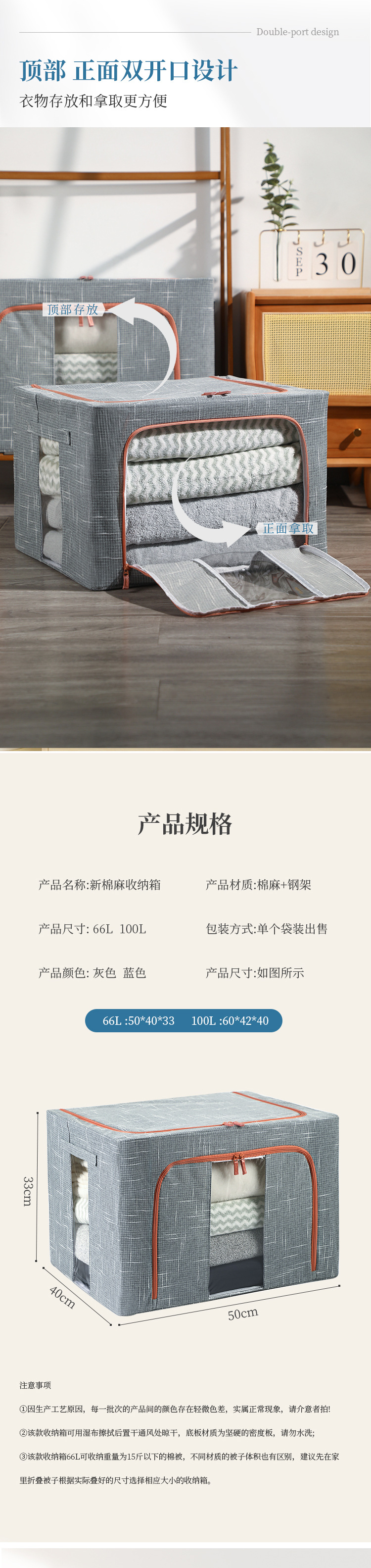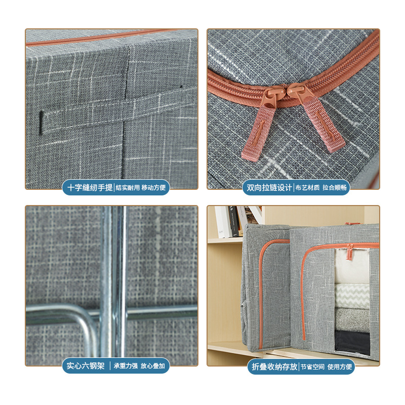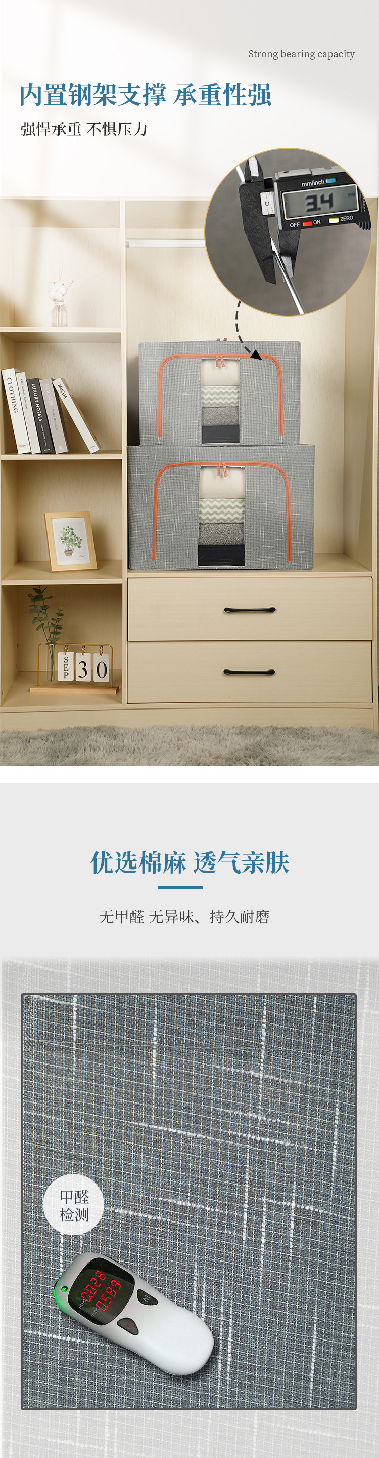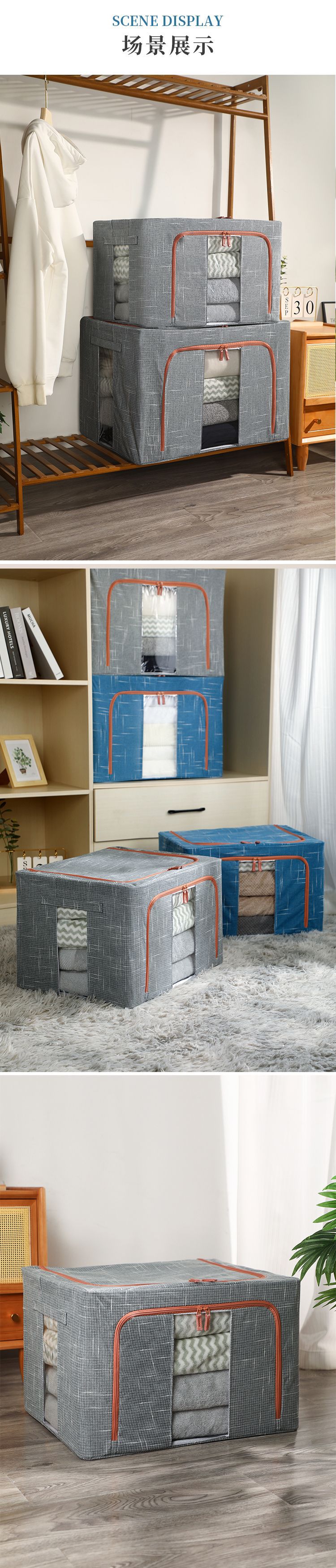 新升级六支架可折叠布艺收纳箱棉麻衣服百纳箱折叠钢架衣物收纳箱