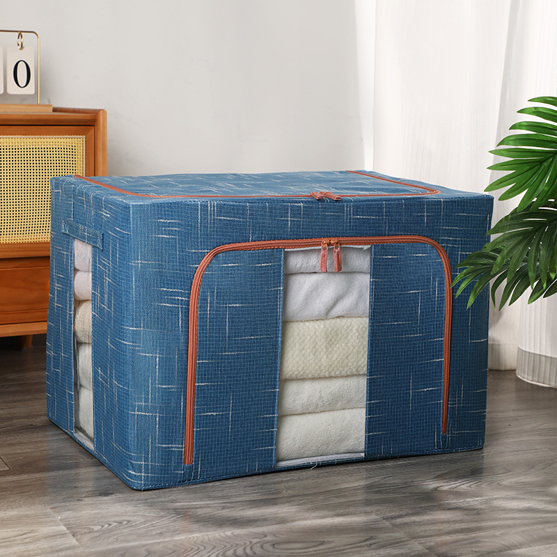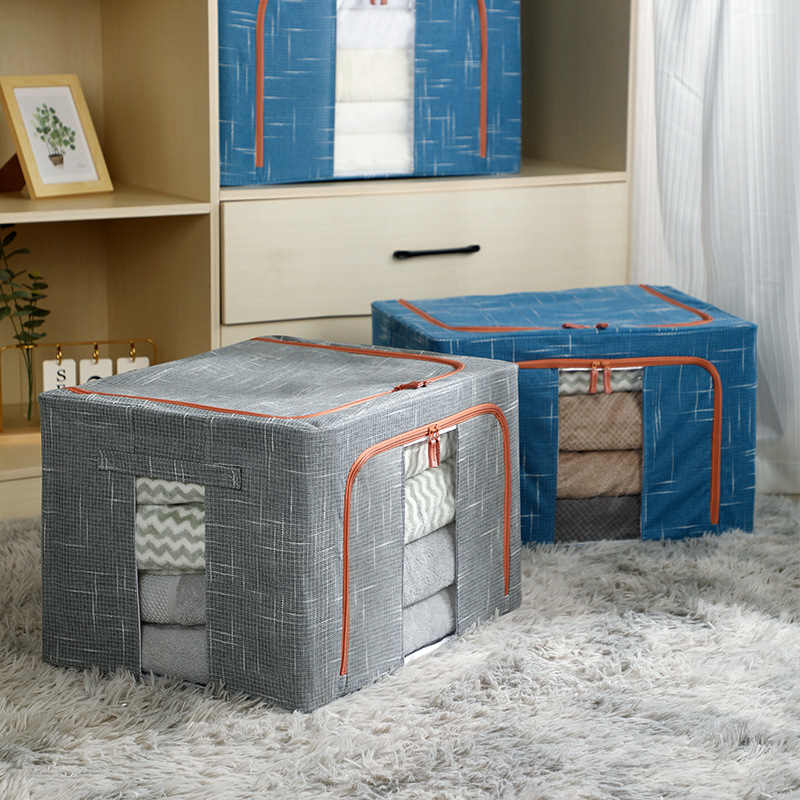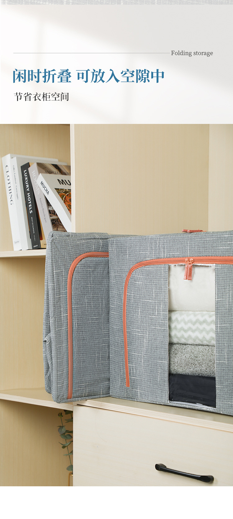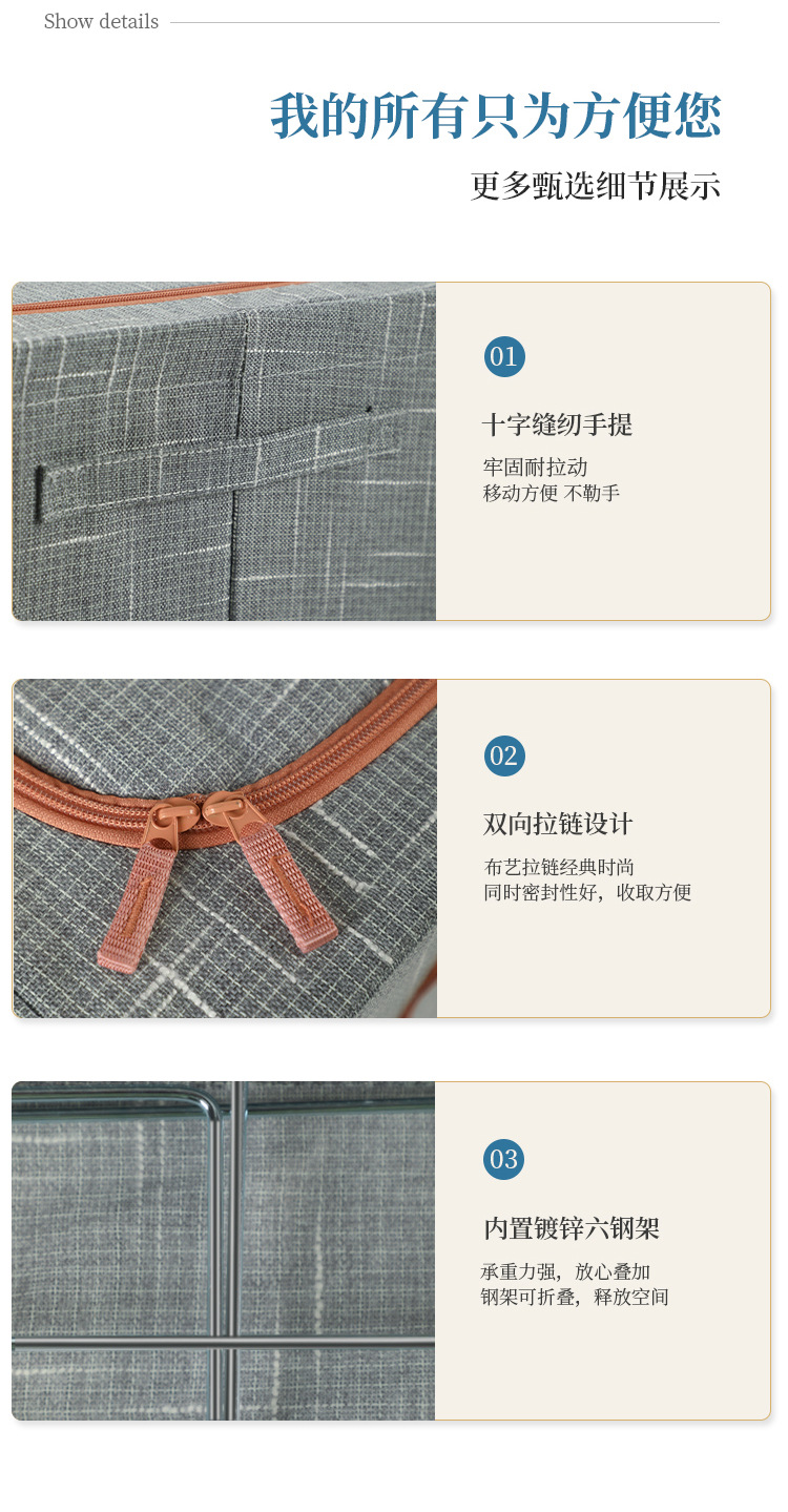 新升级六支架可折叠布艺收纳箱棉麻衣服百纳箱折叠钢架衣物收纳箱