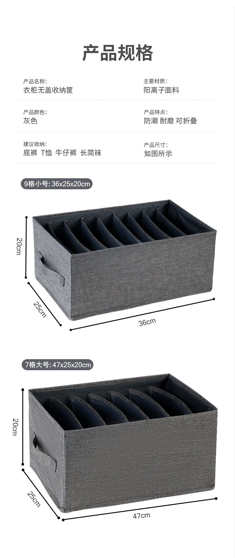 爆款分格衣物收纳盒 抽屉收纳无盖裤子收纳盒