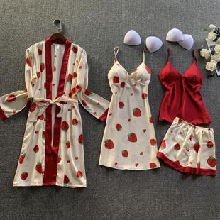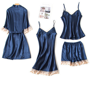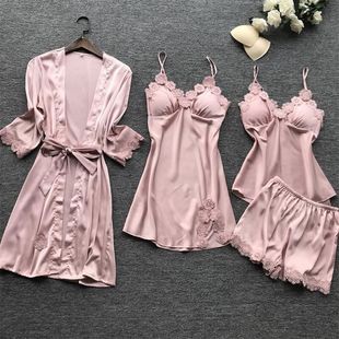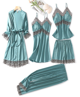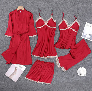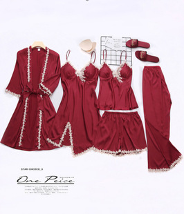 睡衣厂家批发女士仿吊带睡宽松舒适蕾丝五件套家居服内衣睡袍