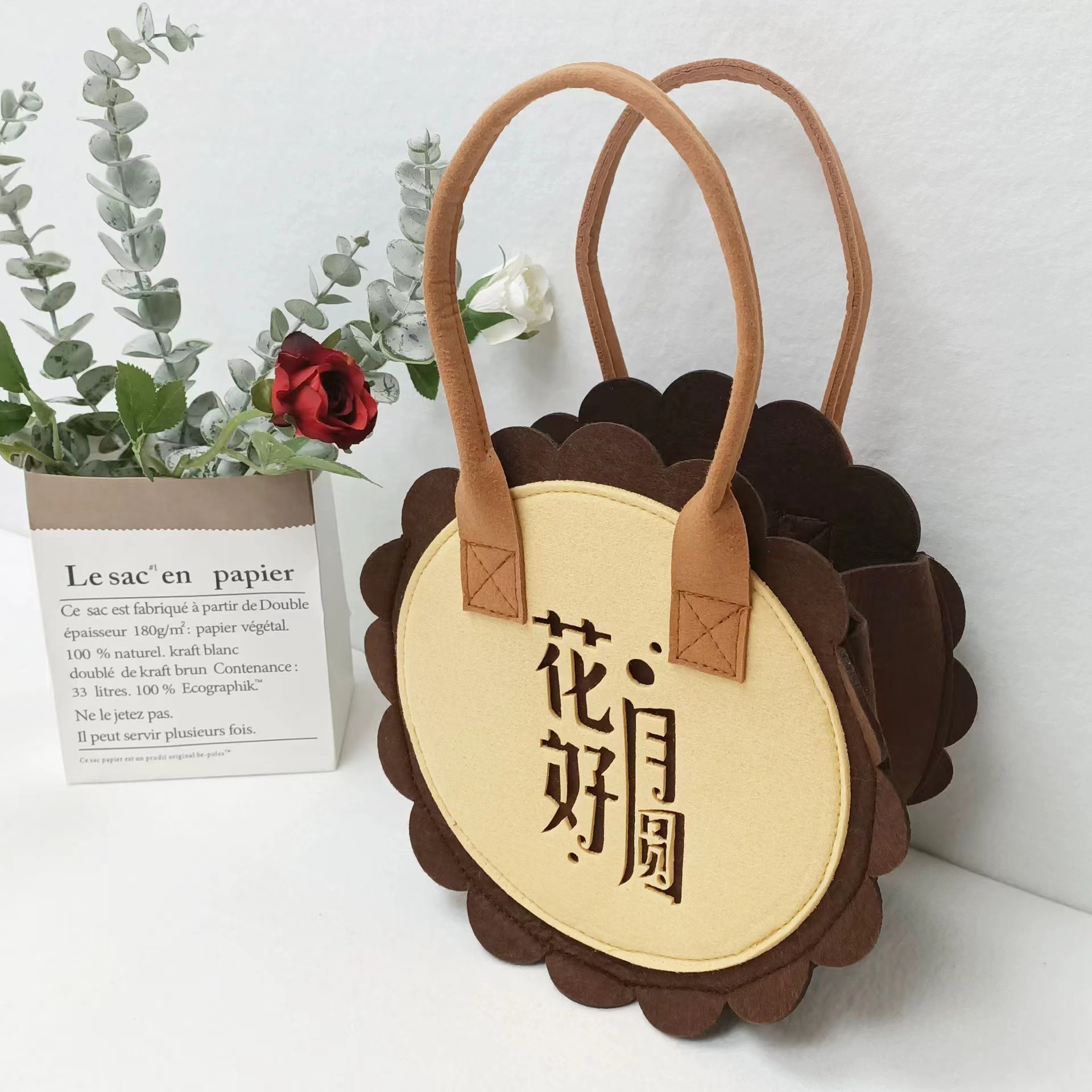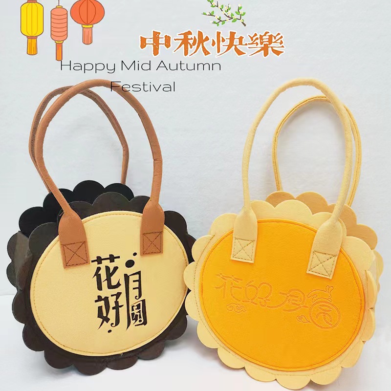 小红书新款中秋节毛毡伴手礼袋月饼礼品包便携式手提袋毛毡包批发
