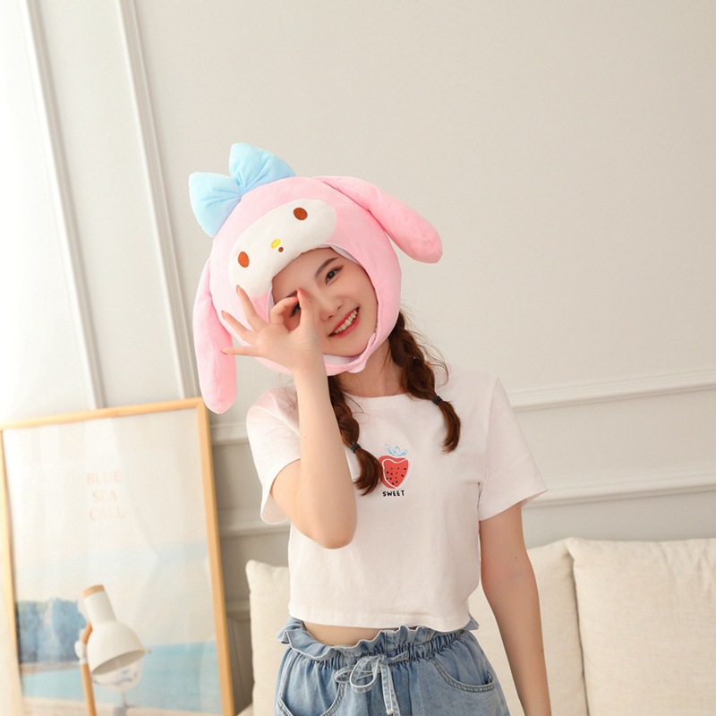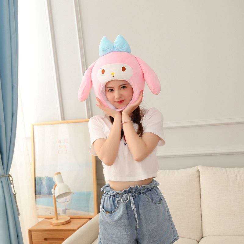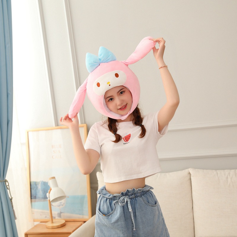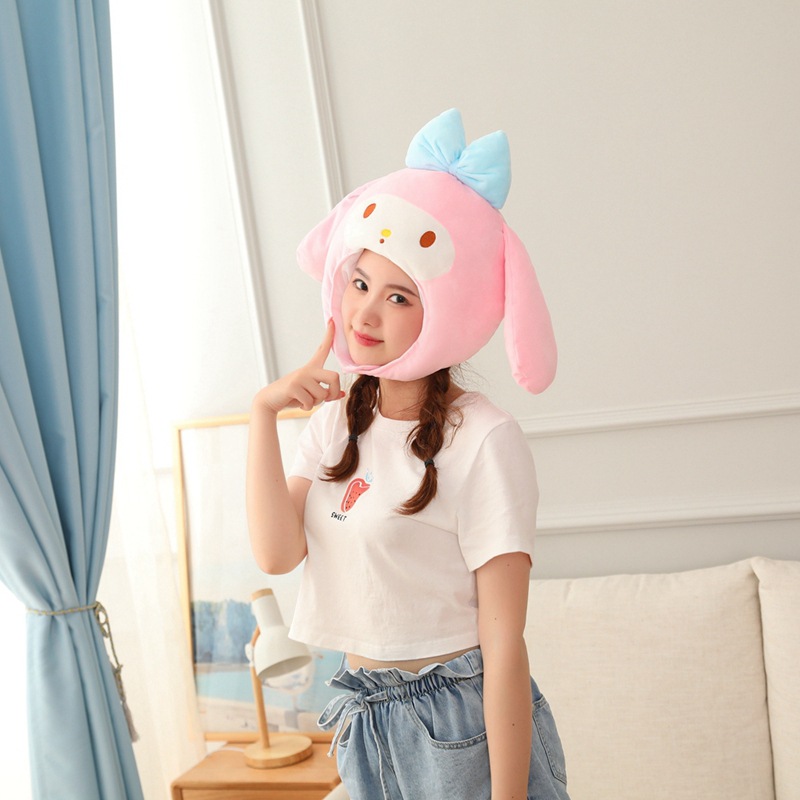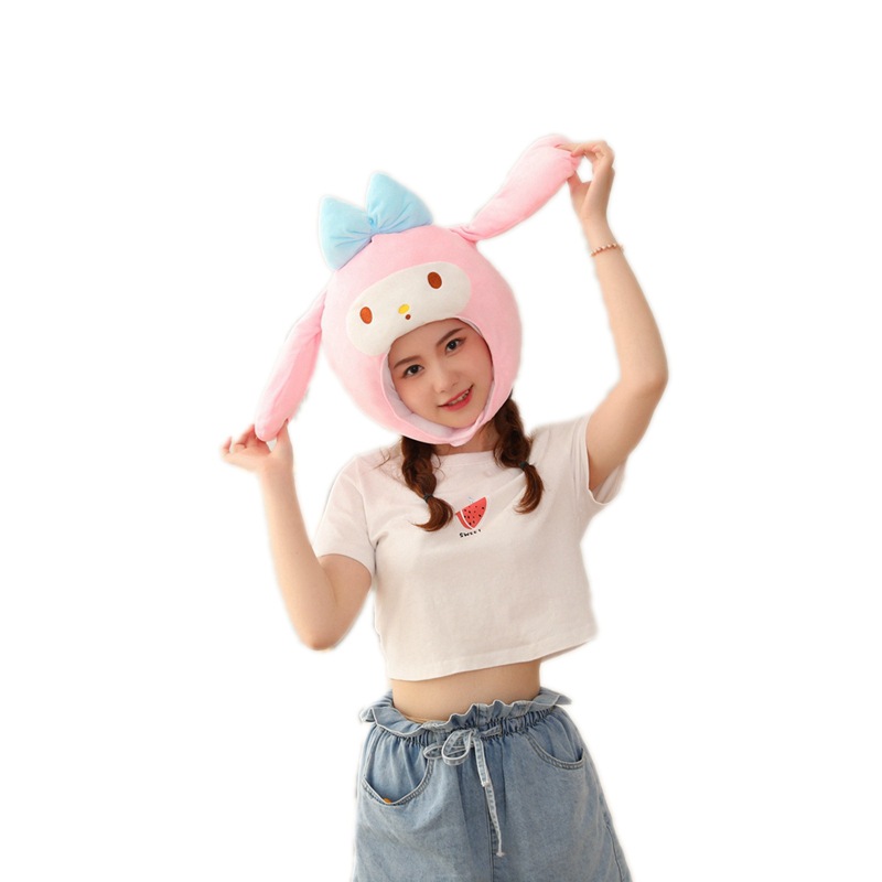 批发 粉色蝴蝶结兔子头套帽子 毛绒头套拍照道具写真道具卡通头套