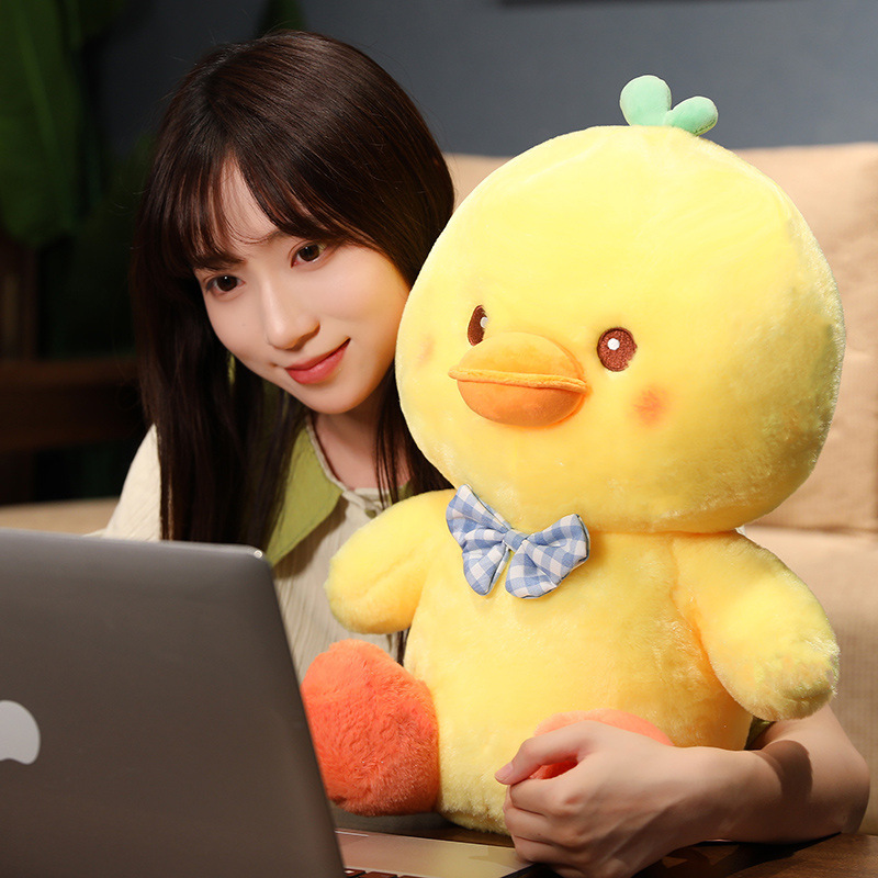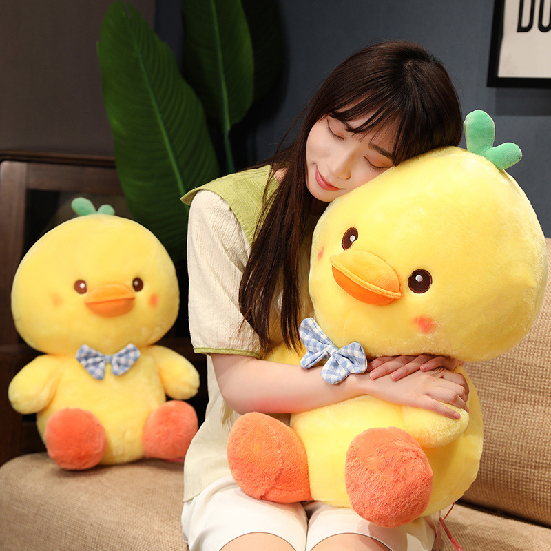跨境领结鸭玩偶娃娃小黄鸭毛绒玩具可爱小鸭子儿童安抚鸭批发