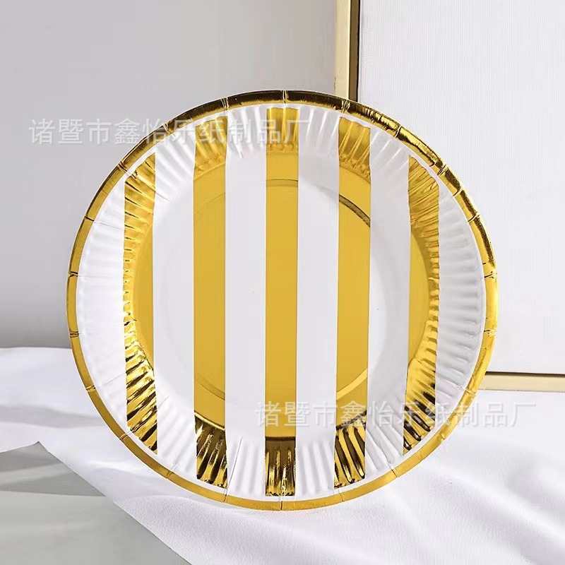 厂家直售一次性9寸加厚蛋糕纸盘 生日派对聚会圆形烫金纸盘批发