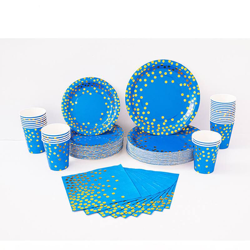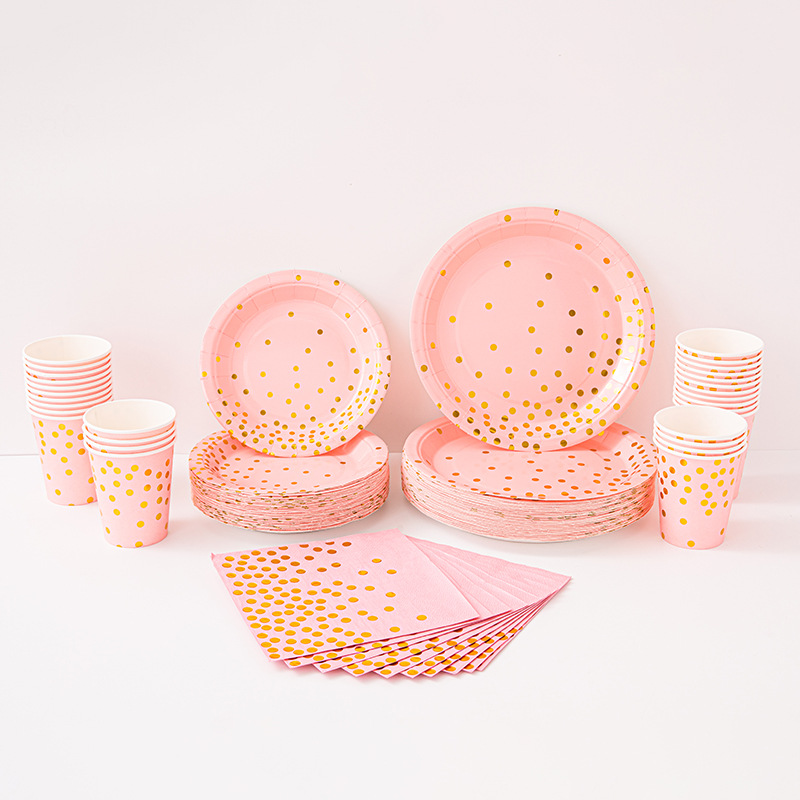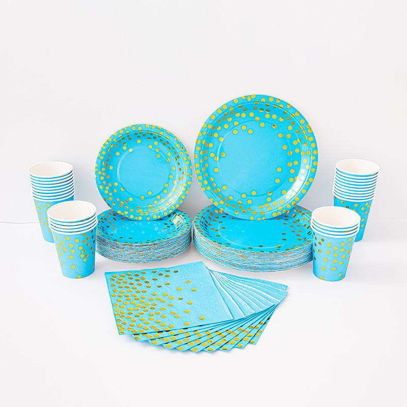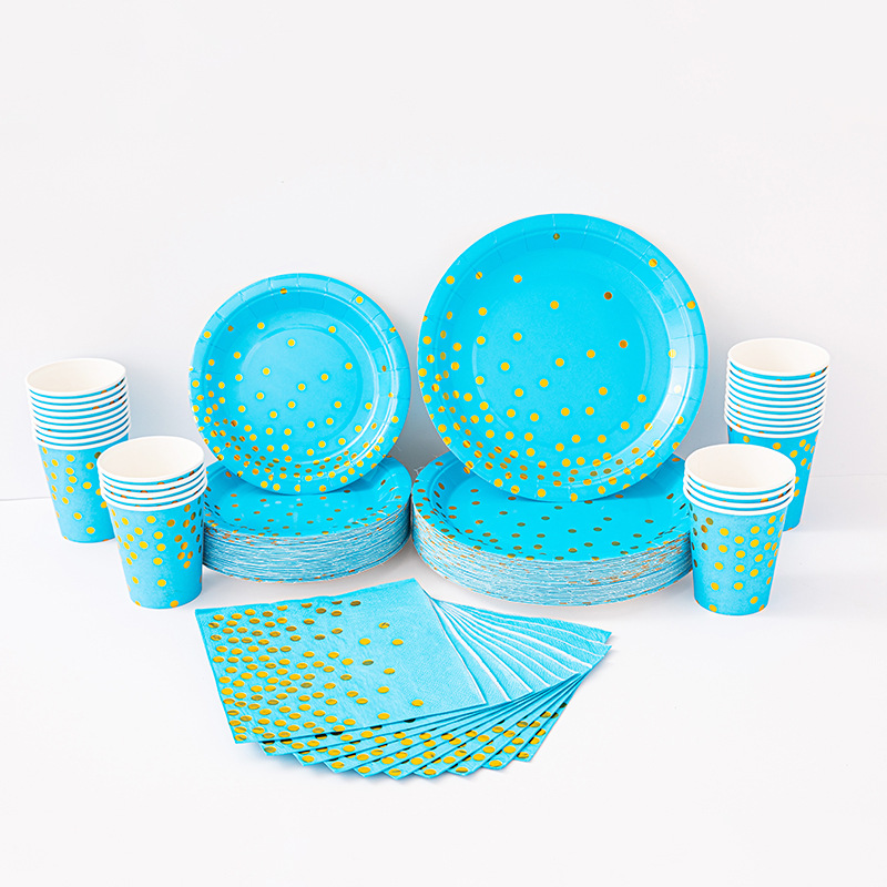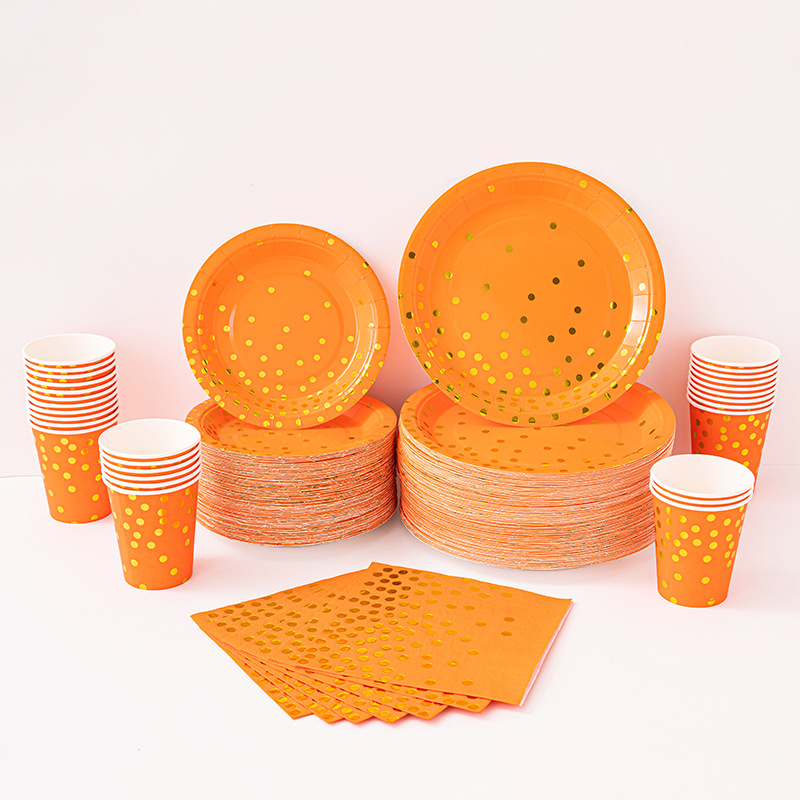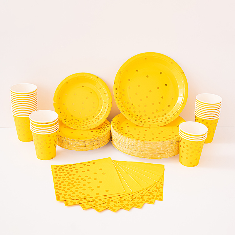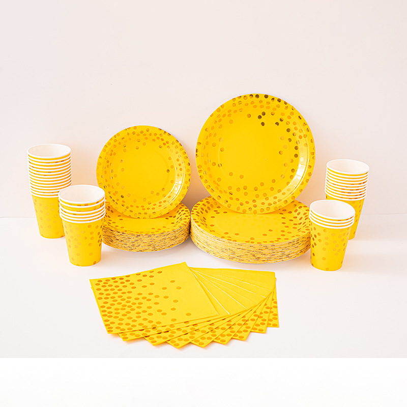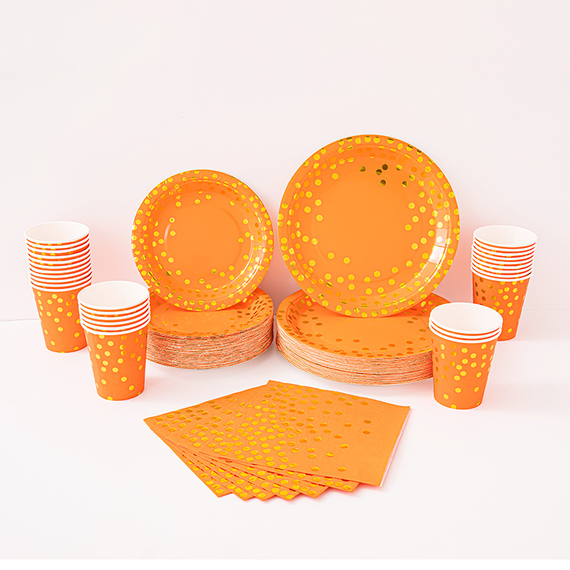 9寸点点纸盘纯底色烫金款派对用品环保可降解餐具圆点一次性纸盘