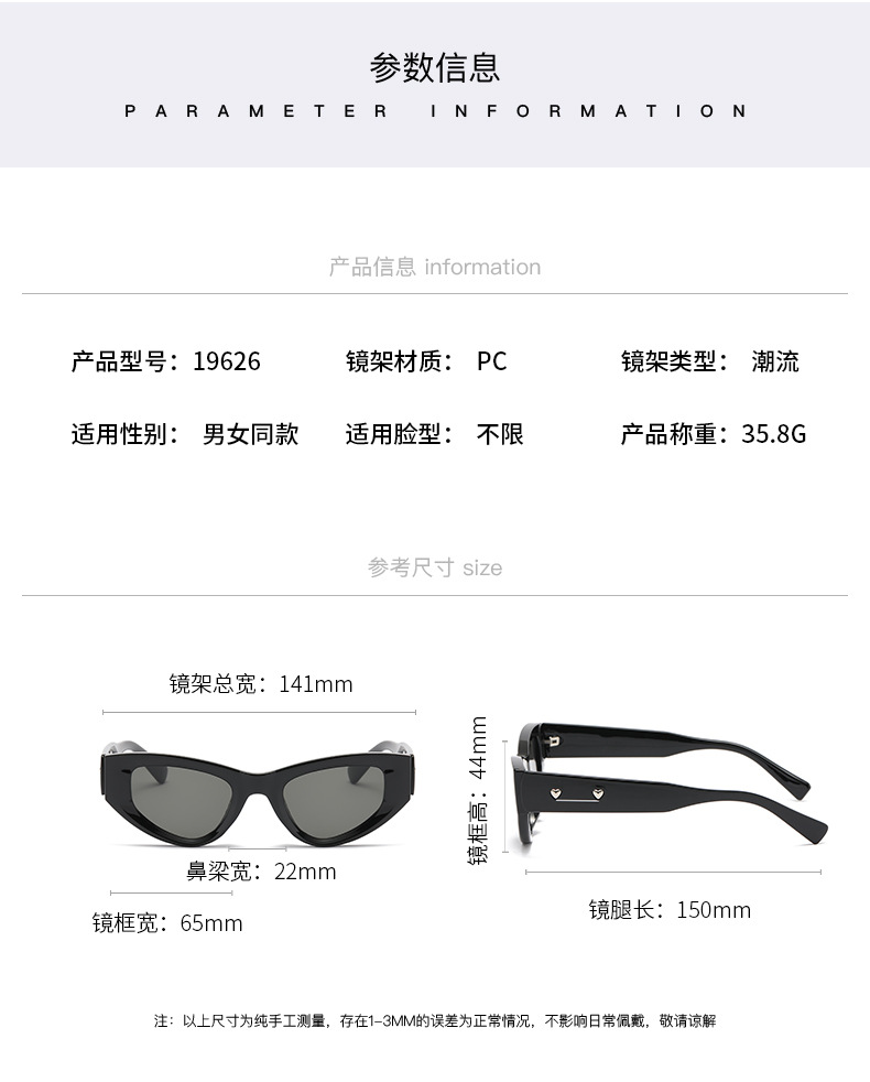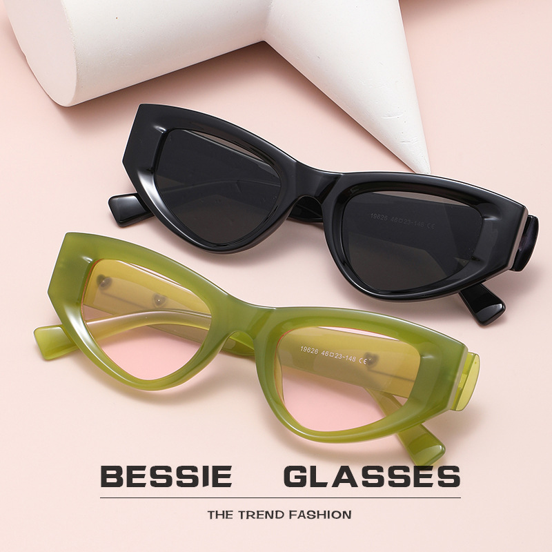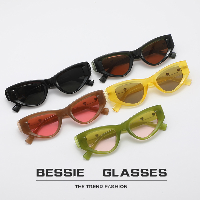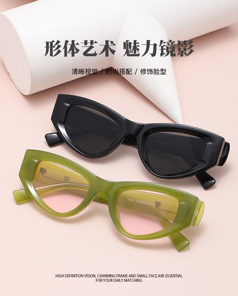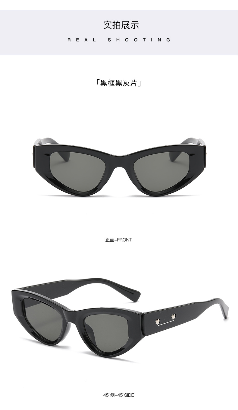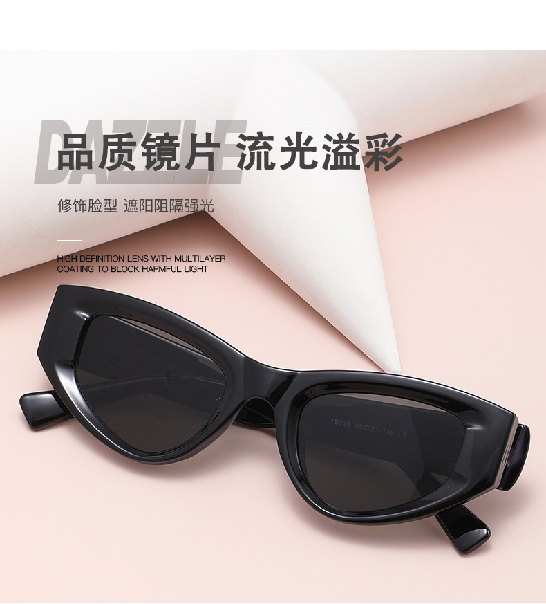 欧美复古猫眼小脸墨镜女高级感ins黑色小框防晒太阳眼镜2023新款