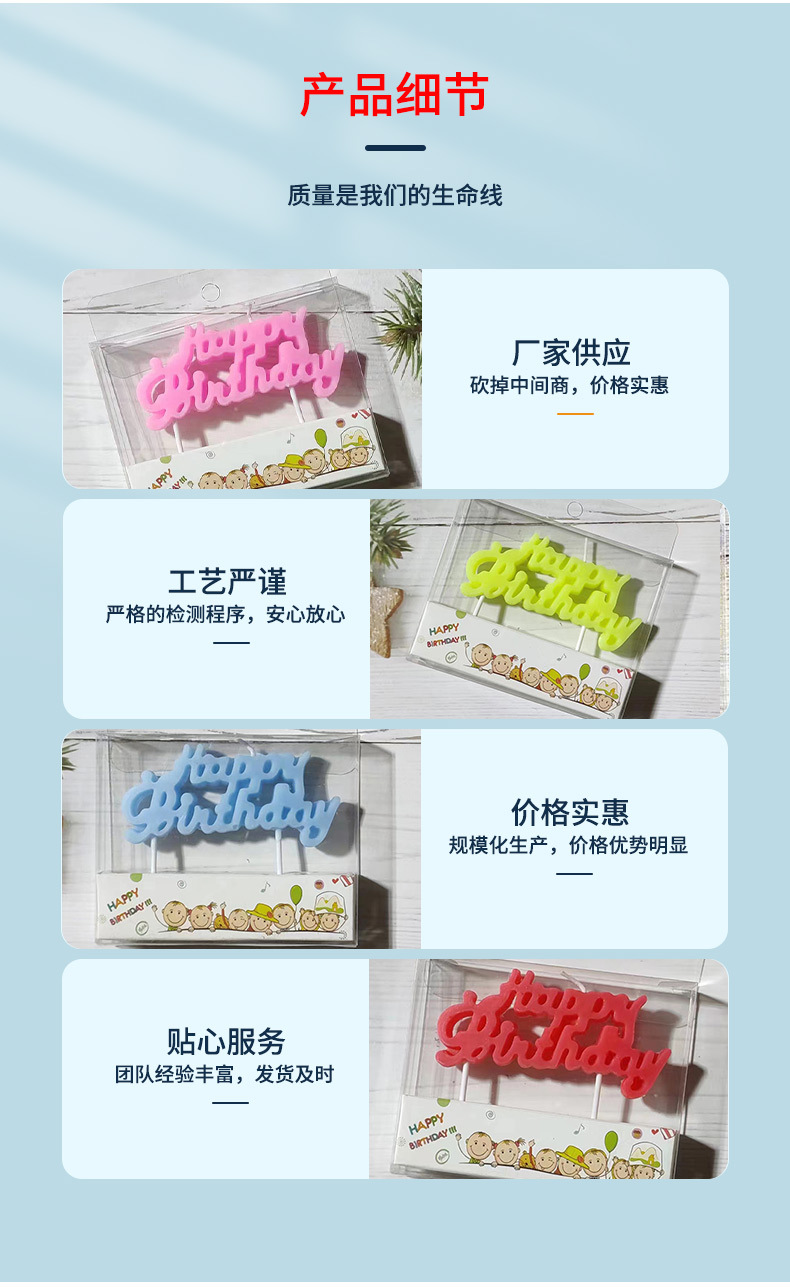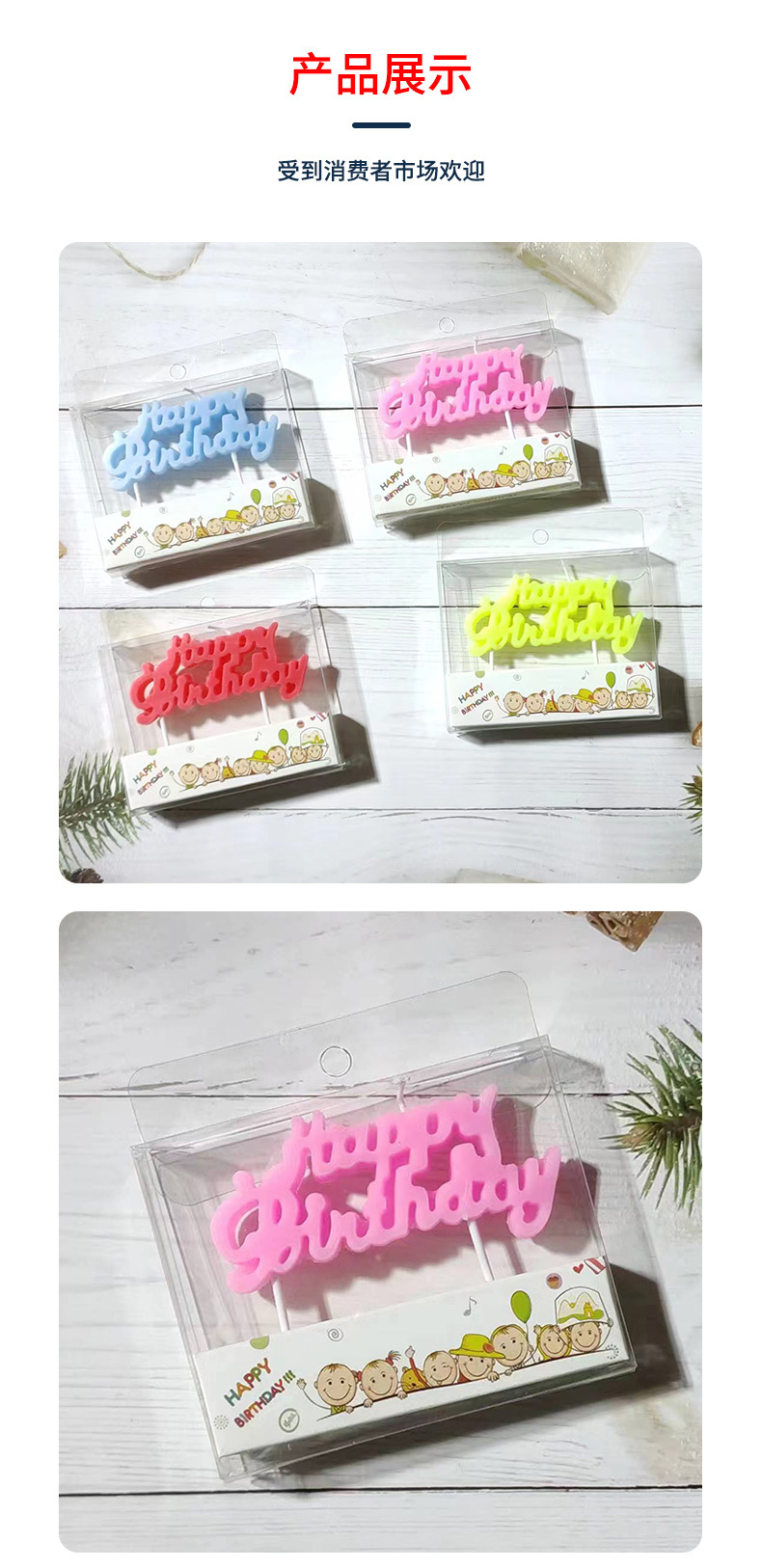 Happy Birthday英文蜡烛浪漫烘焙蛋糕石蜡生日蜡烛甜品台装扮