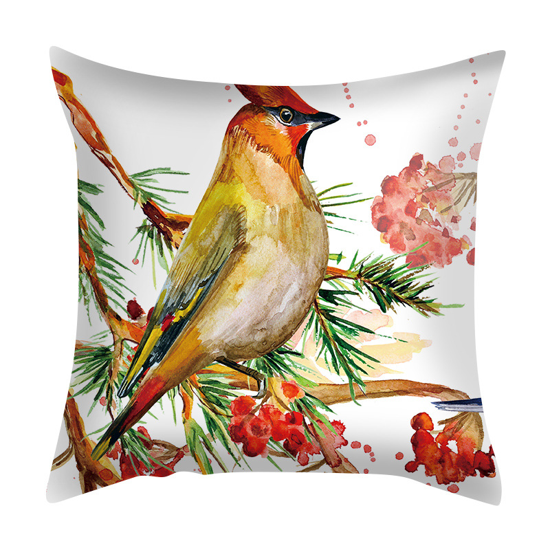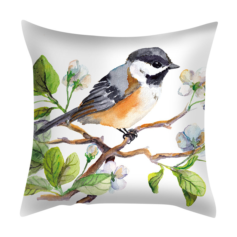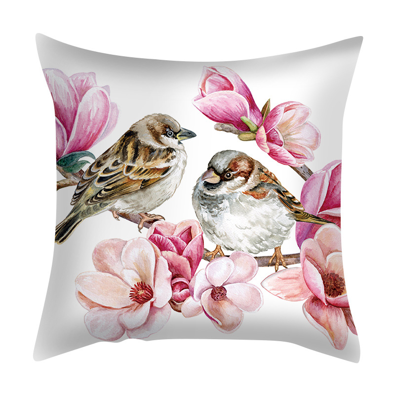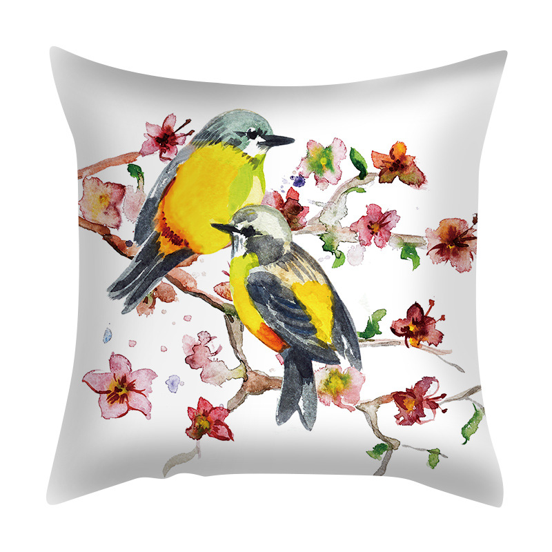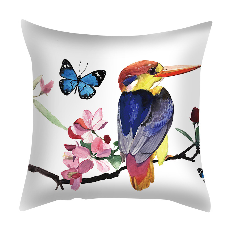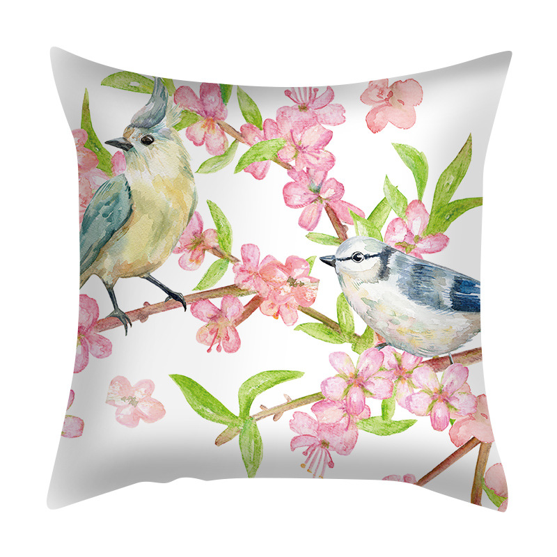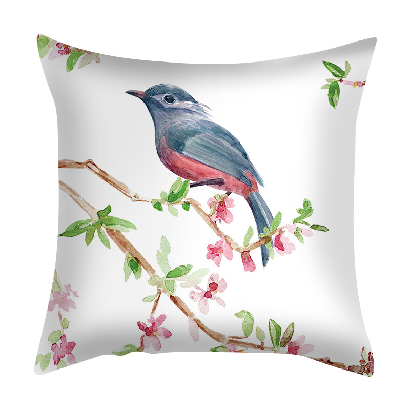2025新款中国彩花鸟抱枕套桃皮绒印花水墨画客厅卧室靠垫靠枕