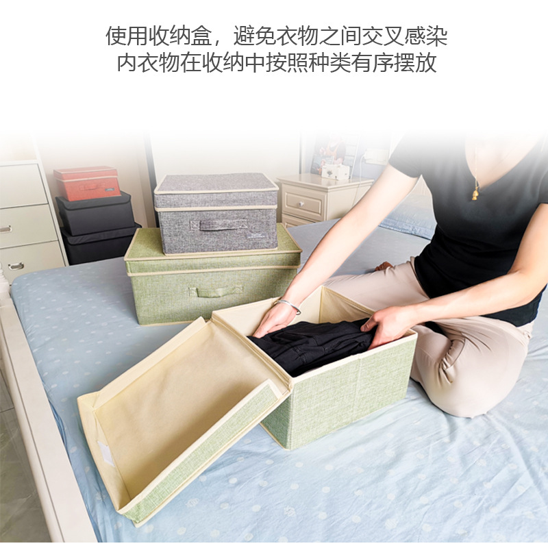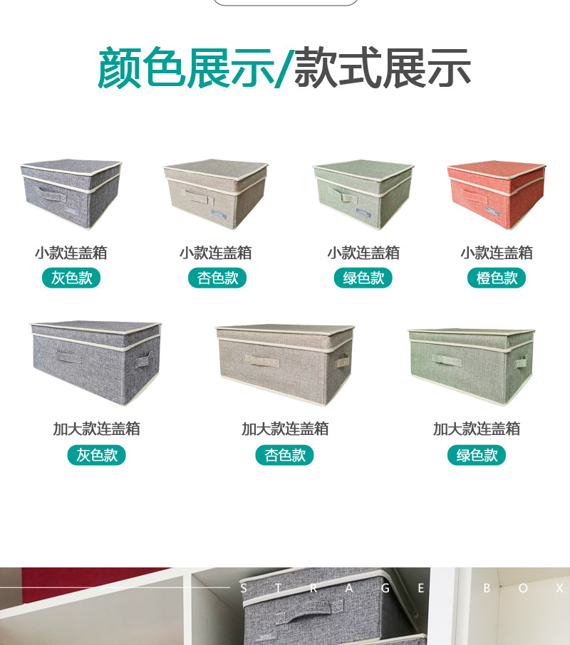 棉麻带盖衣服收纳箱可折叠式防尘整理箱布艺家用收纳箱衣柜收纳盒