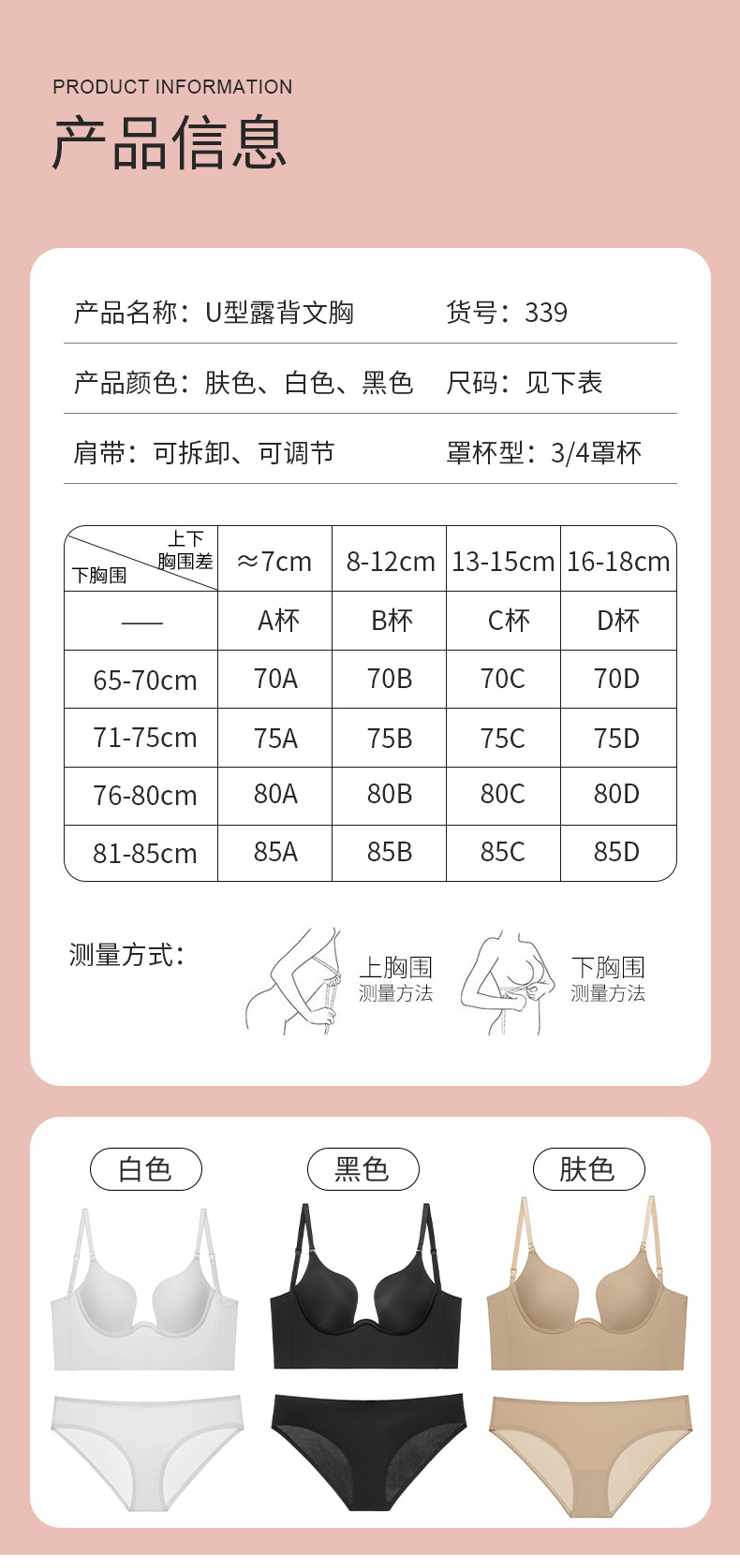跨境深v性感U型大露背文胸无痕美背内衣小胸聚拢软钢圈胸罩套装