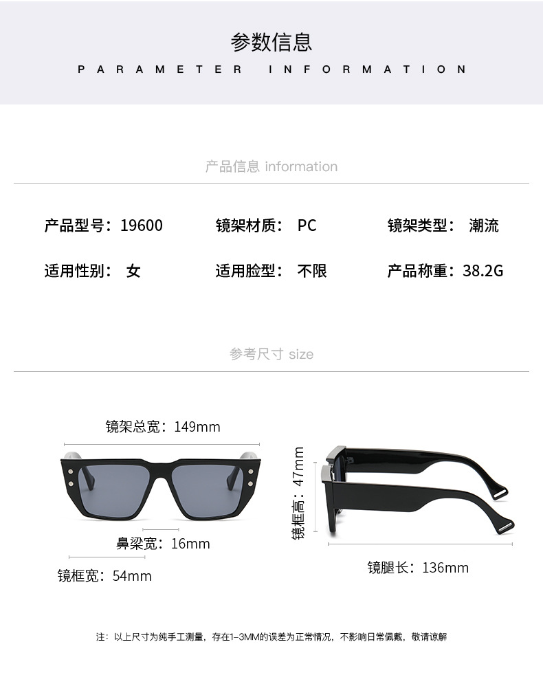 蹦迪辣妹眼镜欧美ins方形米钉街头墨镜韩版网红款嘻哈个性太阳镜