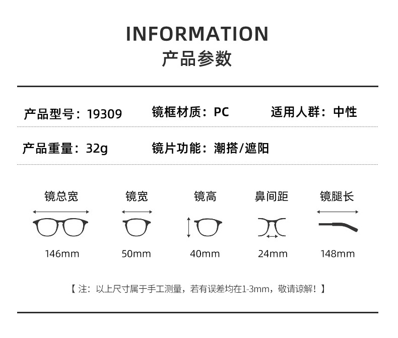 | black frame black and grey lens(黑框黑灰片) | USD $0.0 | 10808 pair available |
