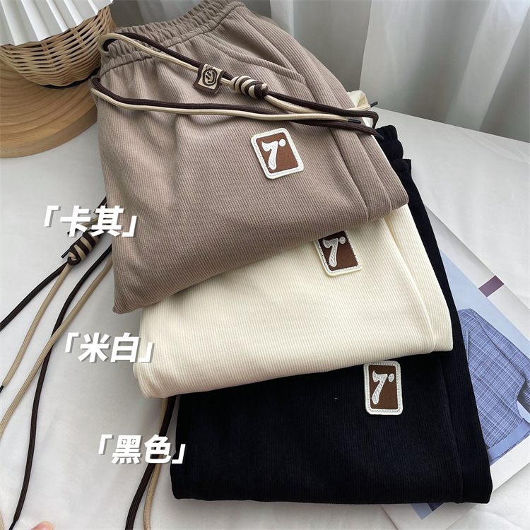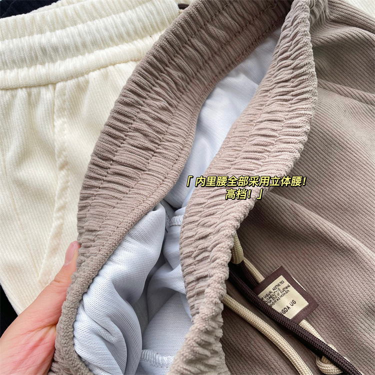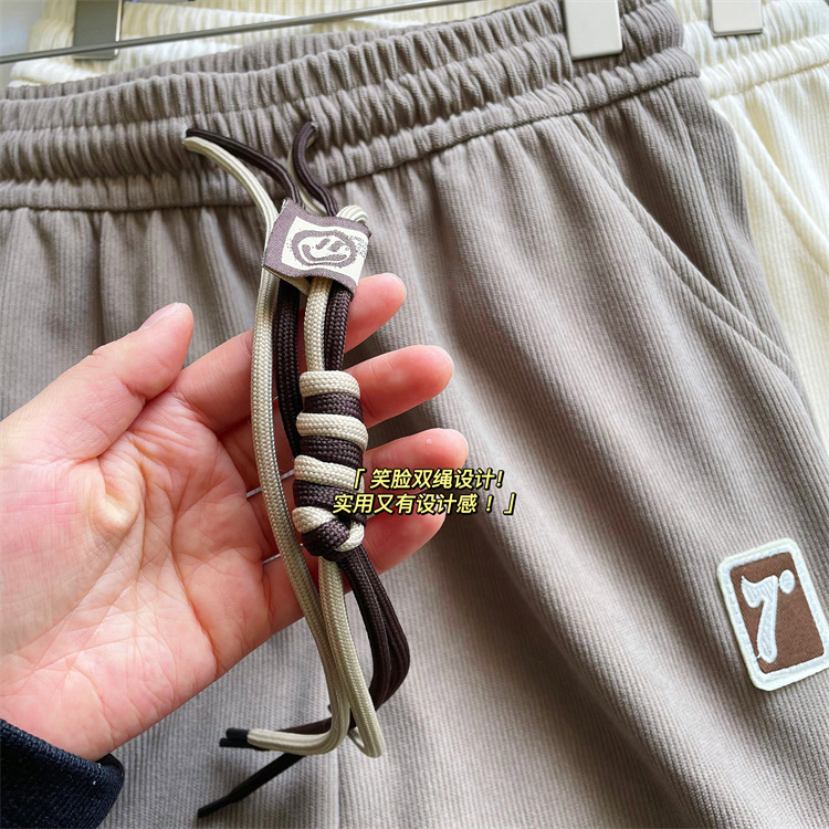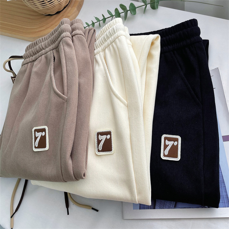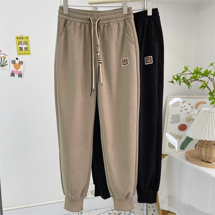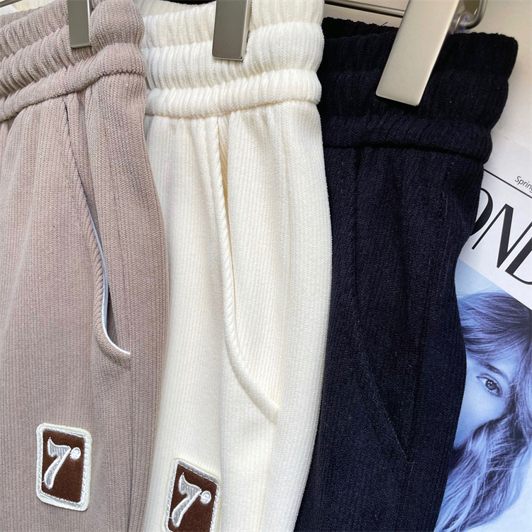 7标欧棉绒束脚裤女春薄款高档宽松显瘦双抽绳细条灯芯绒休闲卫裤
