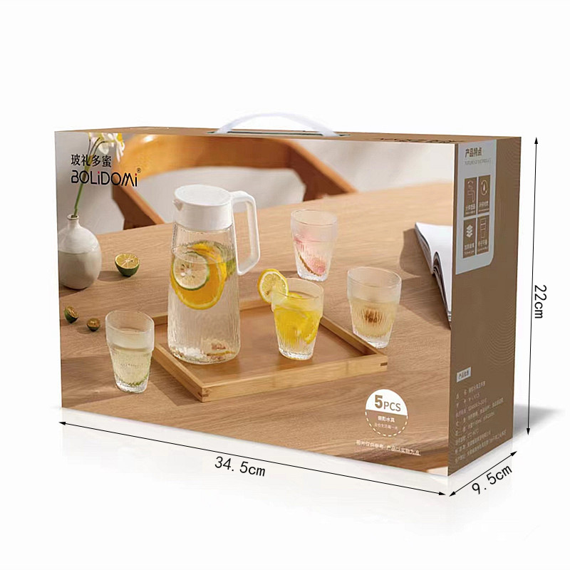 透明玻璃水具五件套家用凉水壶果汁壶创意可叠杯套装店庆活动礼品