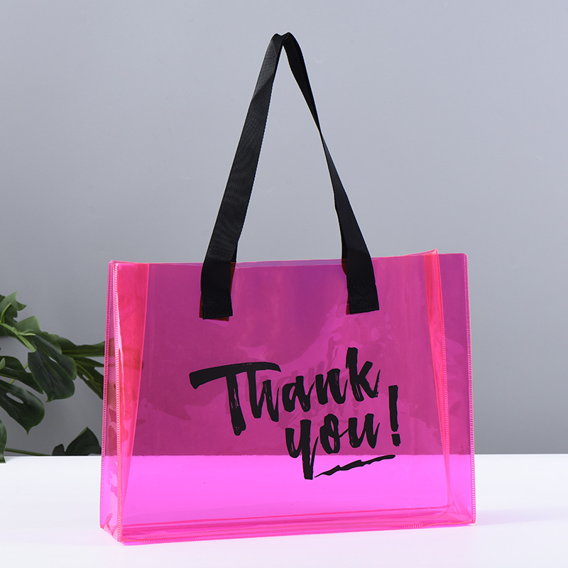 创意幻彩PVC手提袋网红透明果冻手提袋通用礼品塑料手提pvc沙滩包