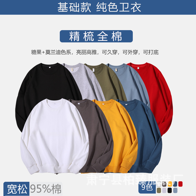 2022秋款男女同款280克纯色圆领宽松毛圈卫衣现货批发印制图logo