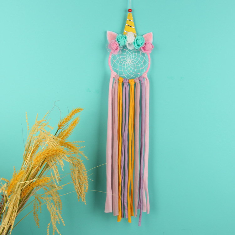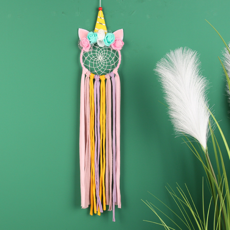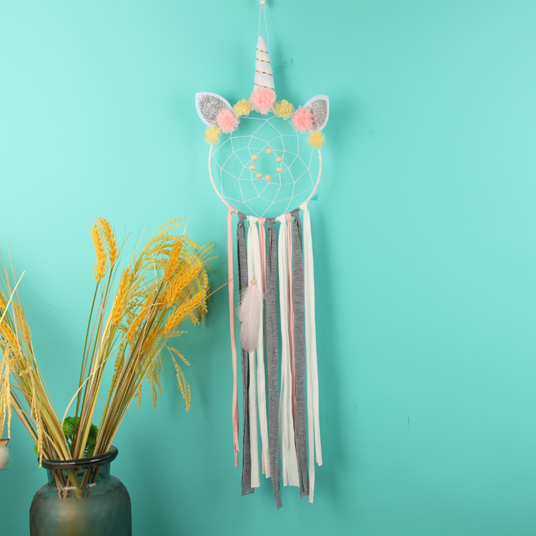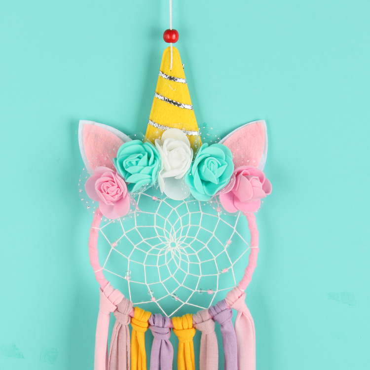 可爱少女风独角兽捕梦网挂饰简约青春女生卧室空中吊饰婚礼装饰品
