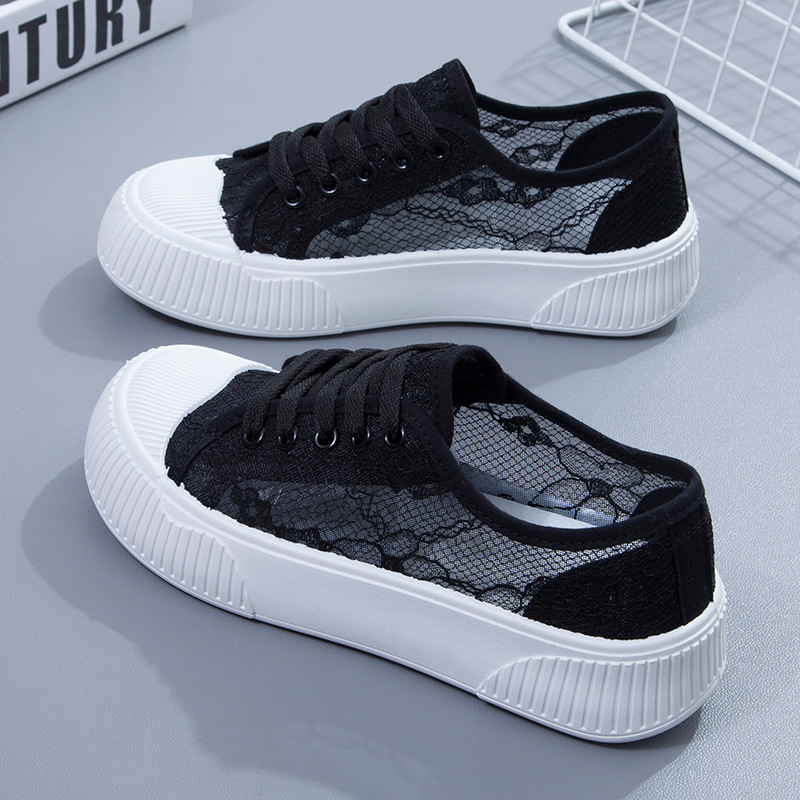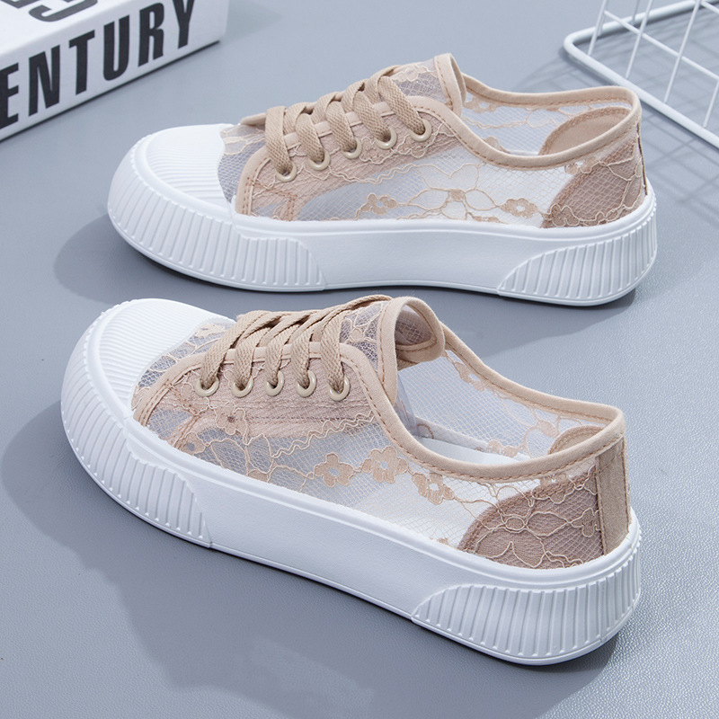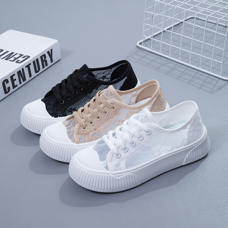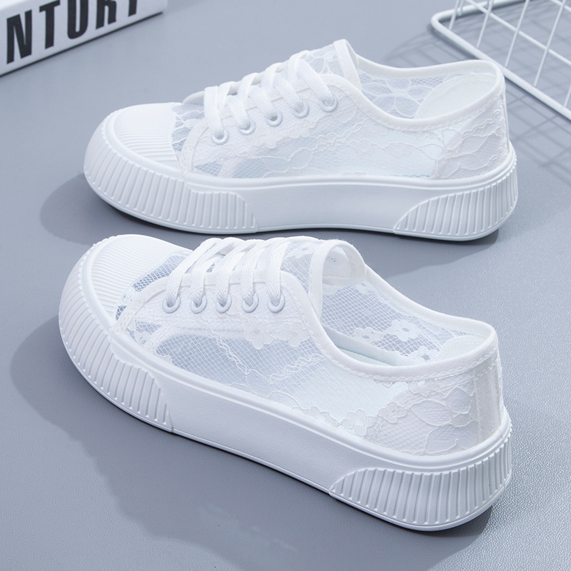 蕾丝平底小白鞋女学生韩版网鞋透气网面板鞋纯色浅口休闲鞋显脚小