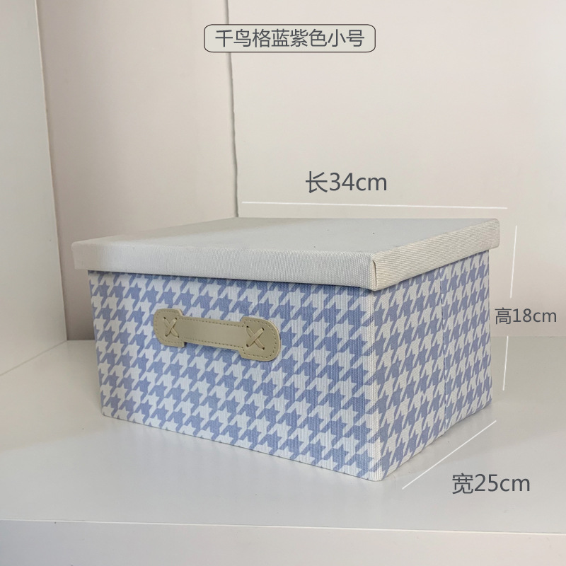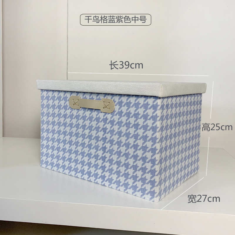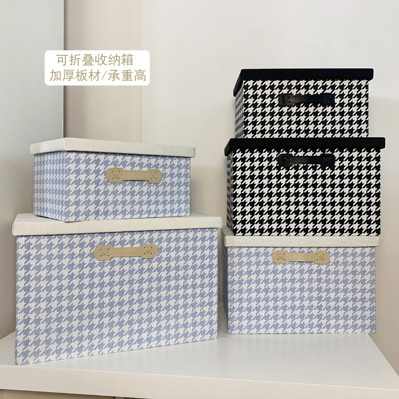 千鸟格带盖可折叠收纳盒学生书本收纳箱内衣衣服储物箱宿舍整理箱