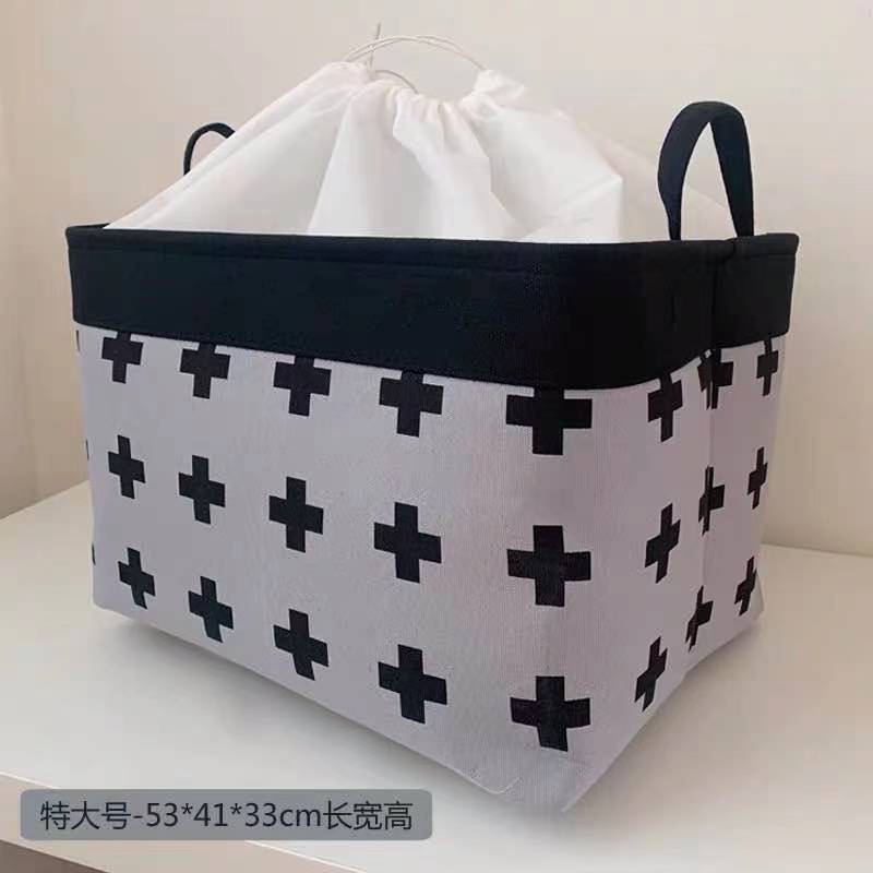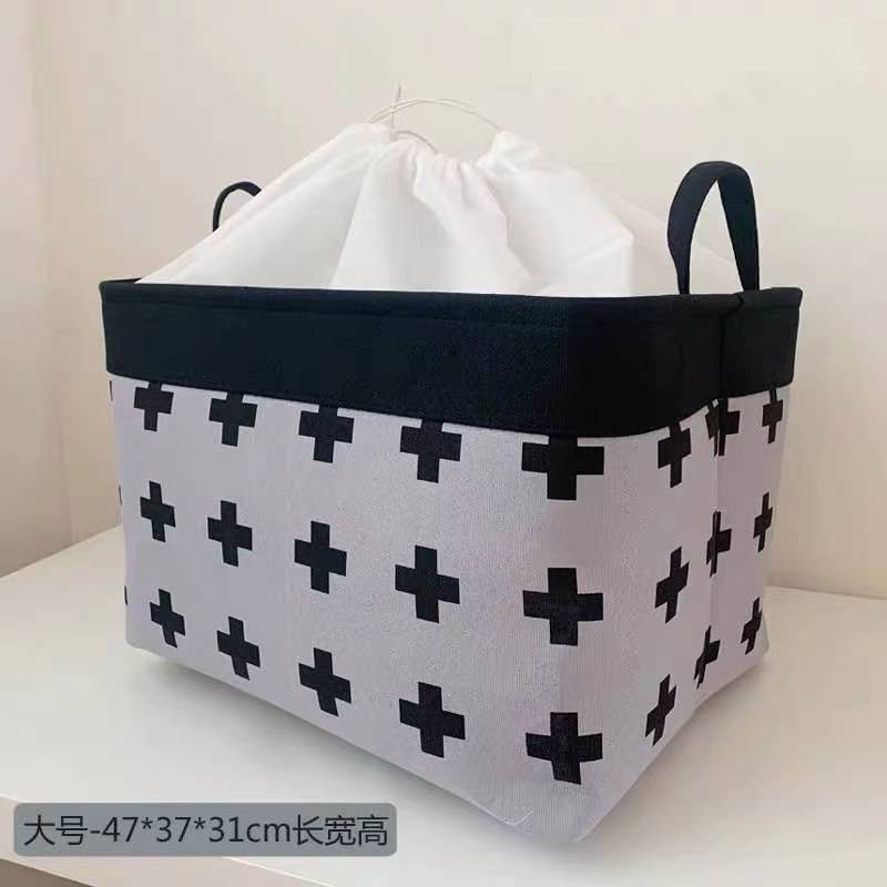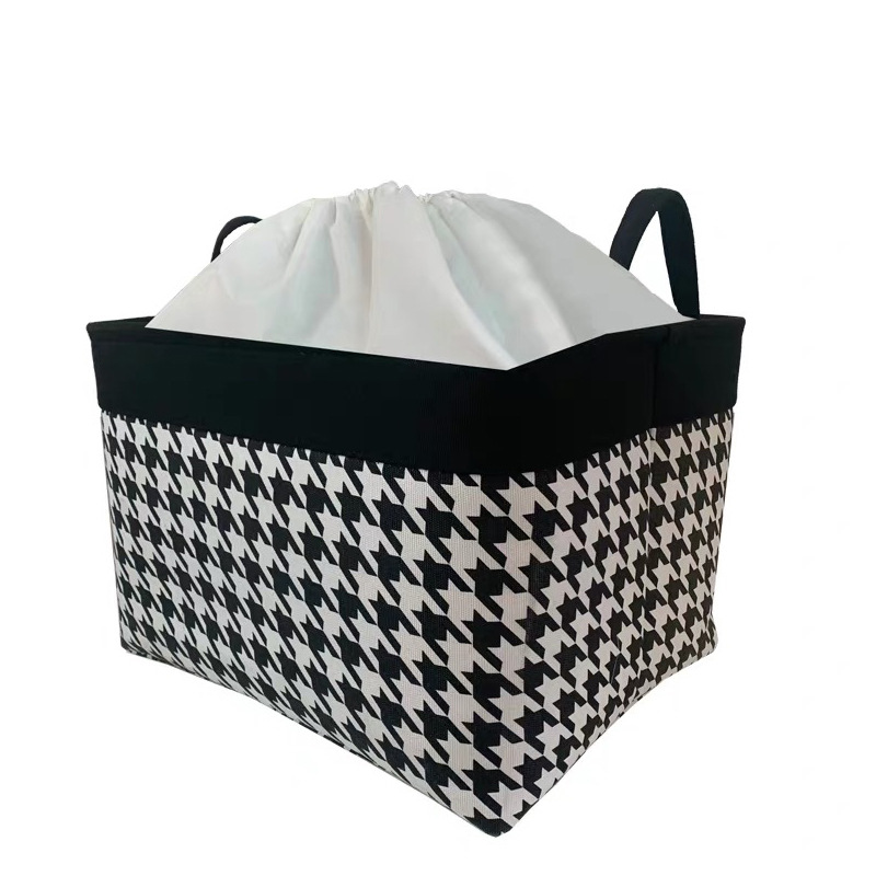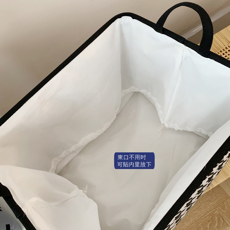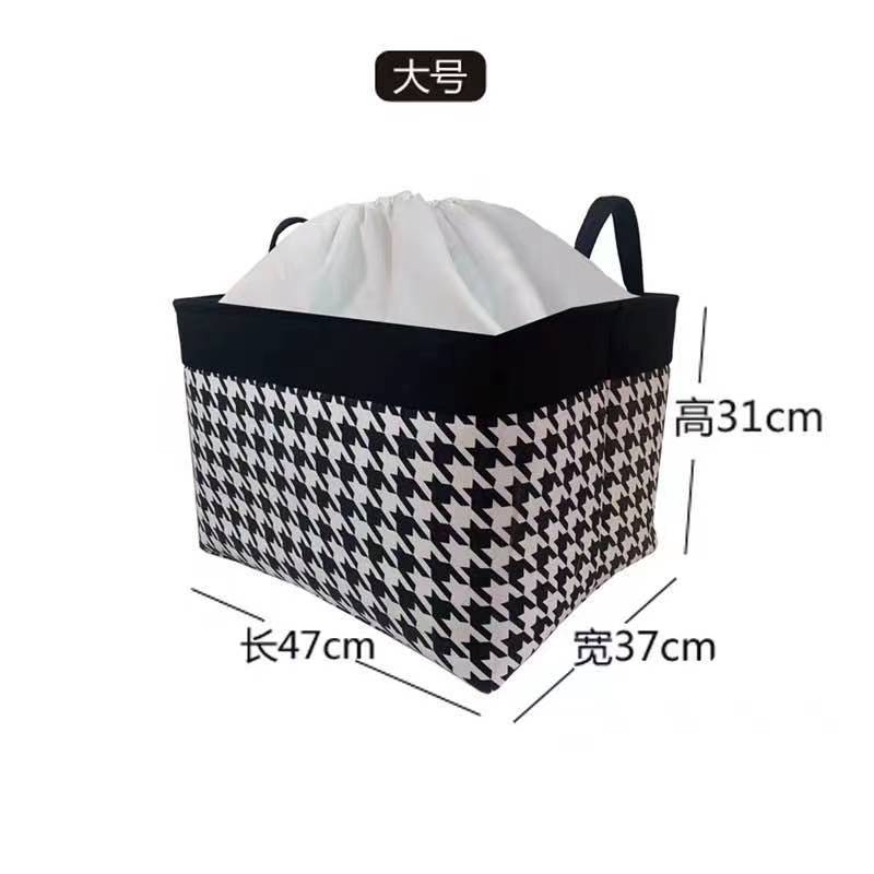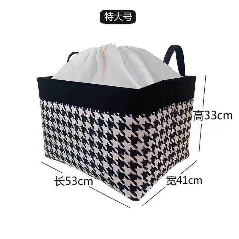 千鸟格图案三层加厚束口衣柜收纳筐帆布布艺置物筐衣服被子整理筐