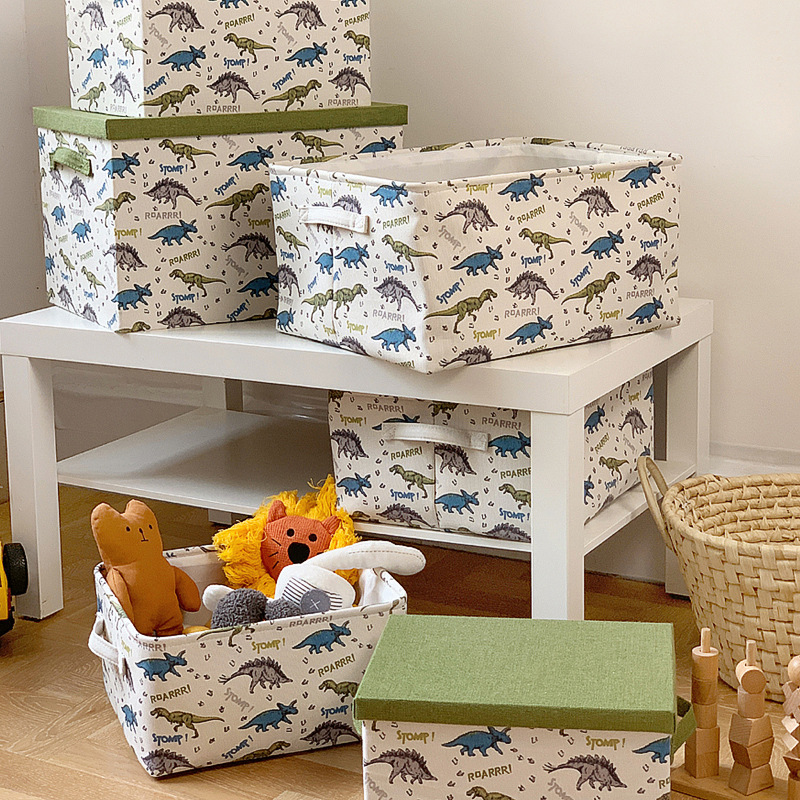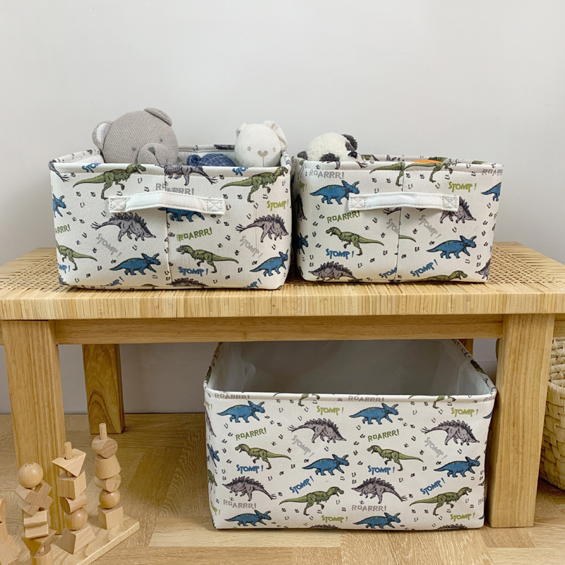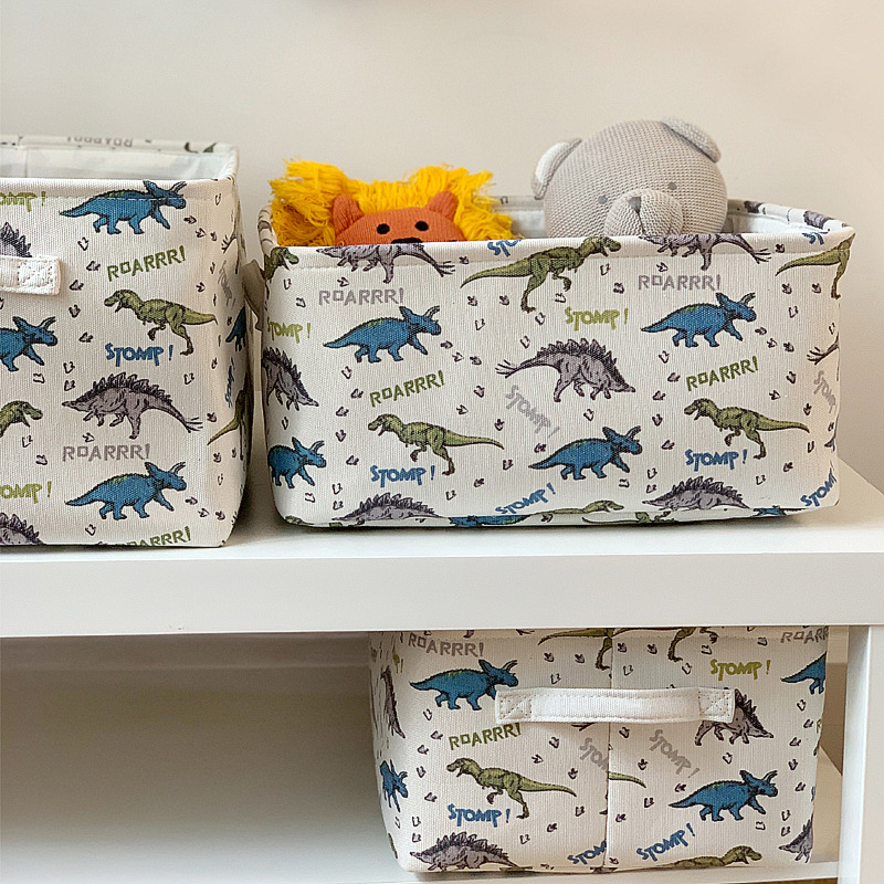 电脑印花恐龙图案涤棉帆布面料收纳篮三层加厚布艺儿童玩具收纳筐