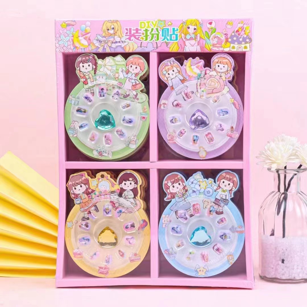 正版公主儿童卡通指甲贴纸小麻薯造型女孩美甲贴片假指甲贴宝石