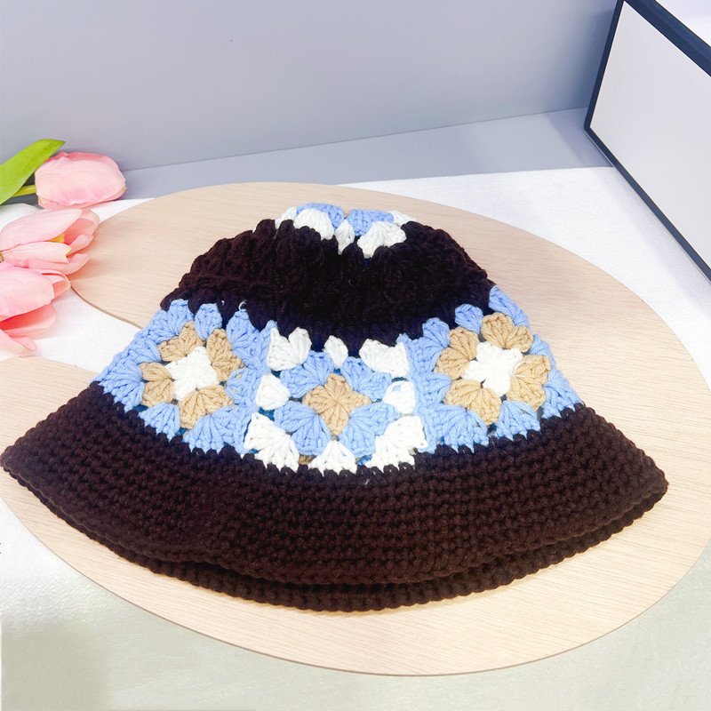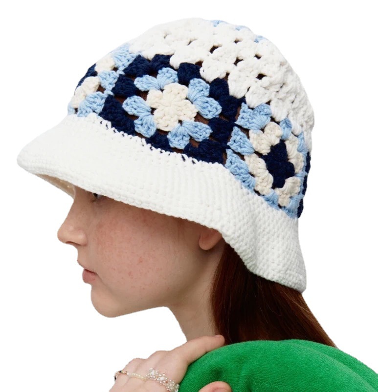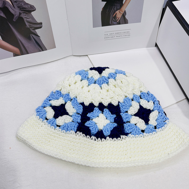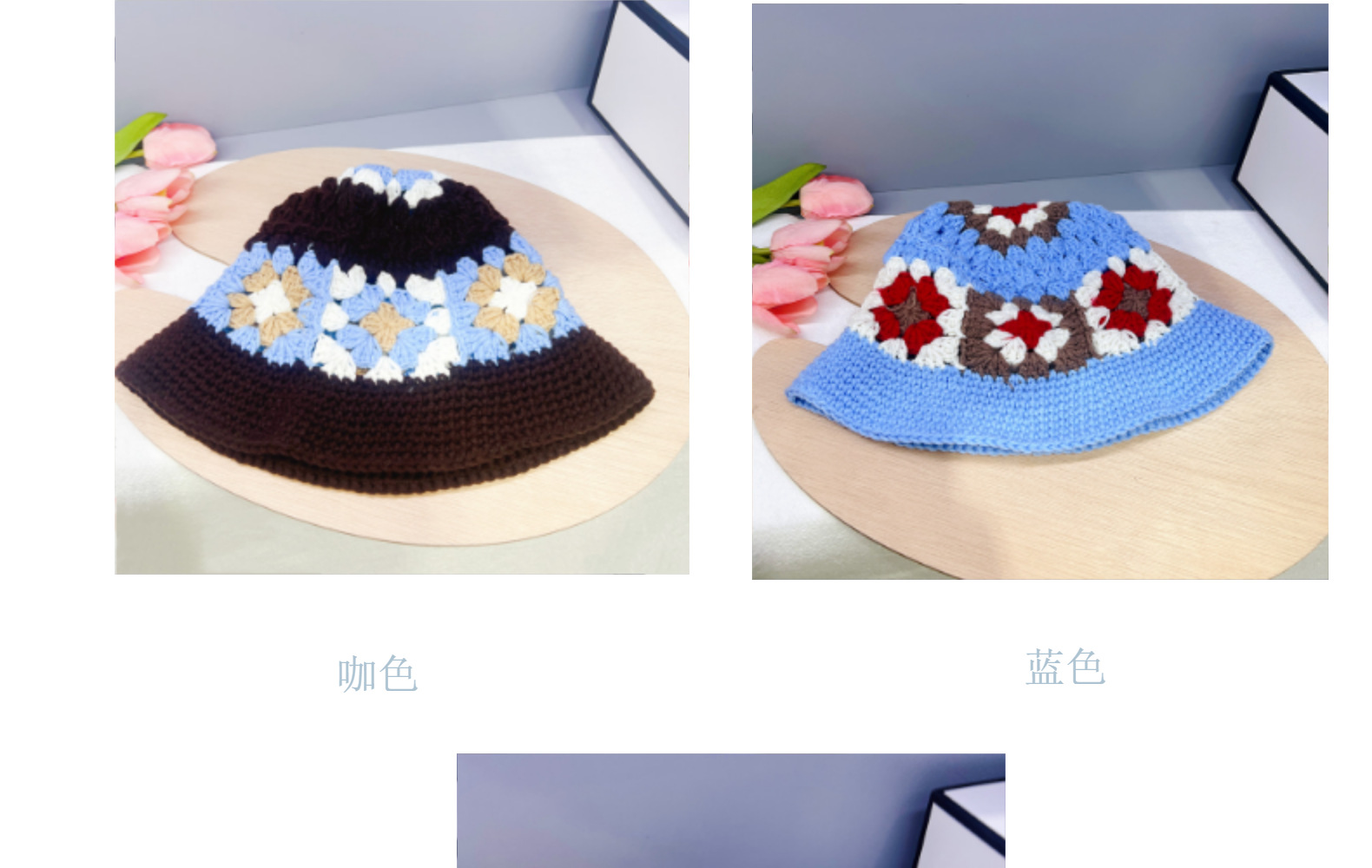 新款博主百搭设计感渔夫帽显脸小钩针镂空水桶帽女针织盆帽大头围