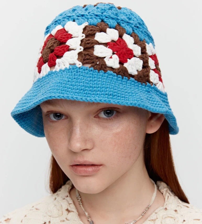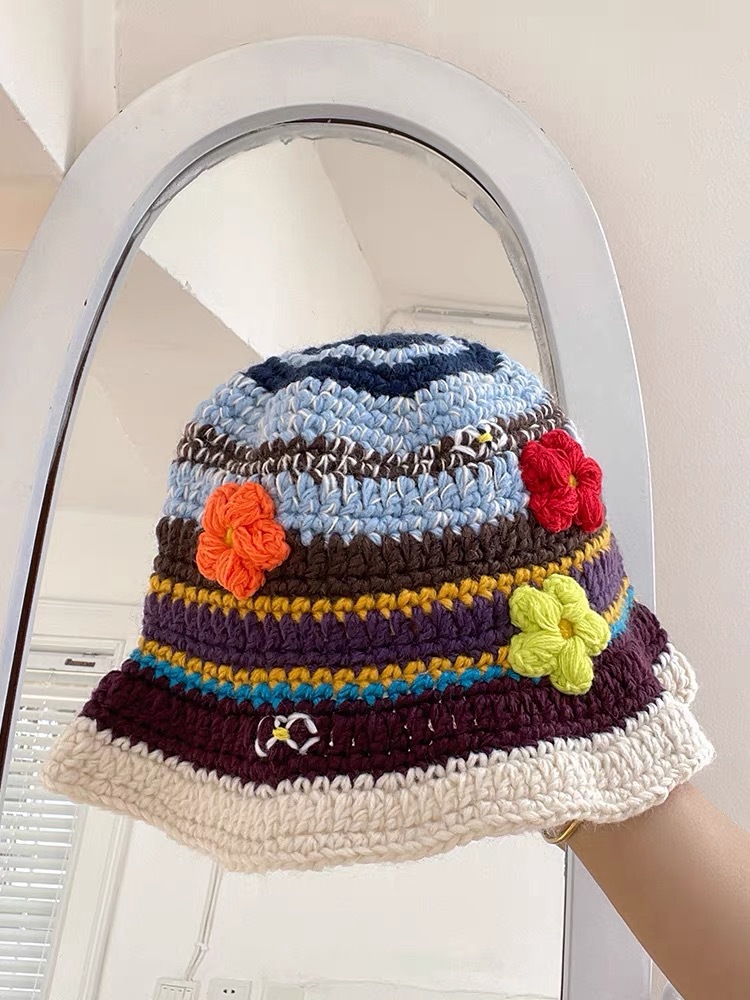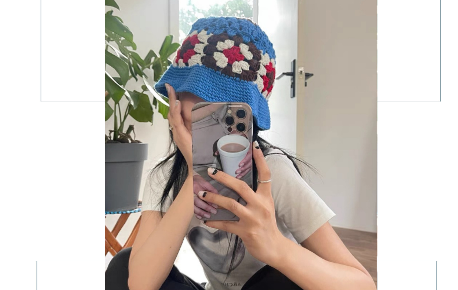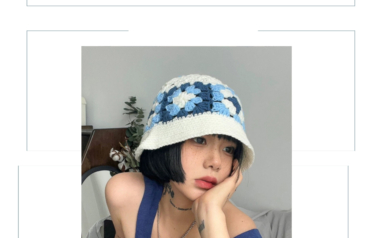 新款博主百搭设计感渔夫帽显脸小钩针镂空水桶帽女针织盆帽大头围